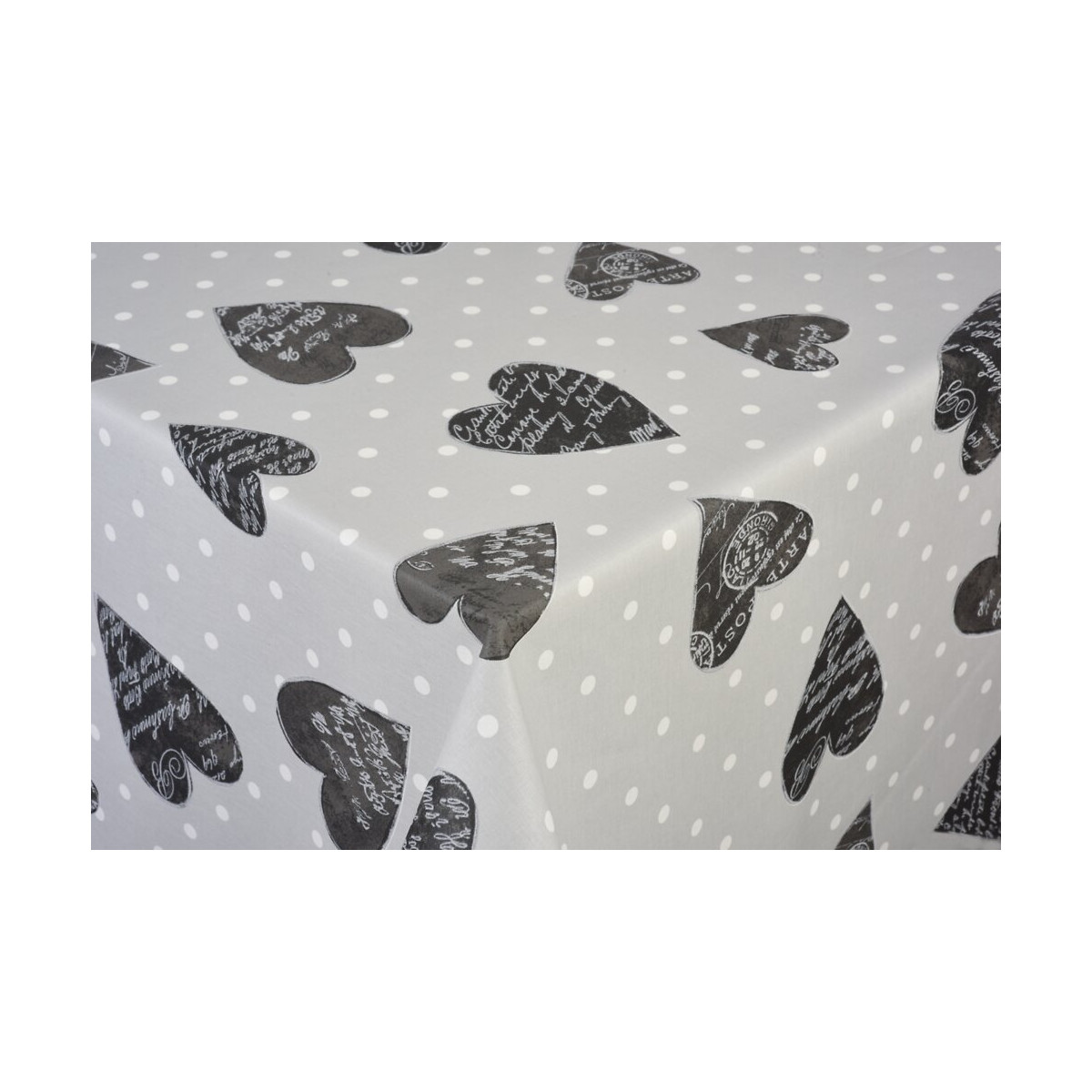 nappe coton enduit à la coupe motif imprimé c?ur gris 1,4x15m résistante à l'eau et aux tâches grace à sa double enduction acrylique