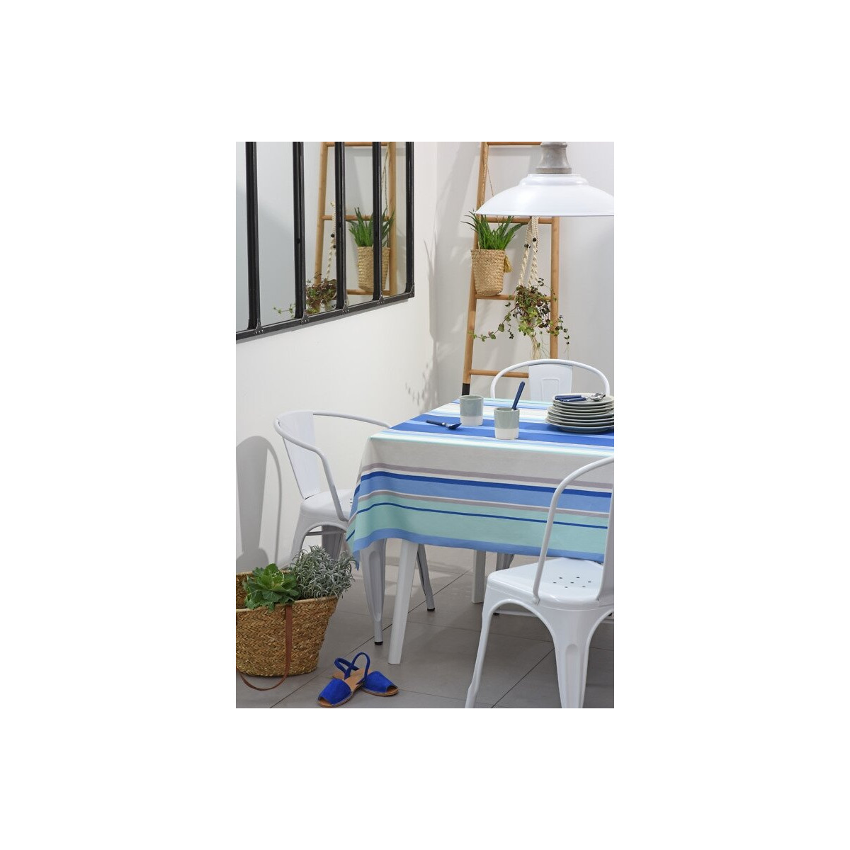 nappe coton enduit bayadere bleu au metre