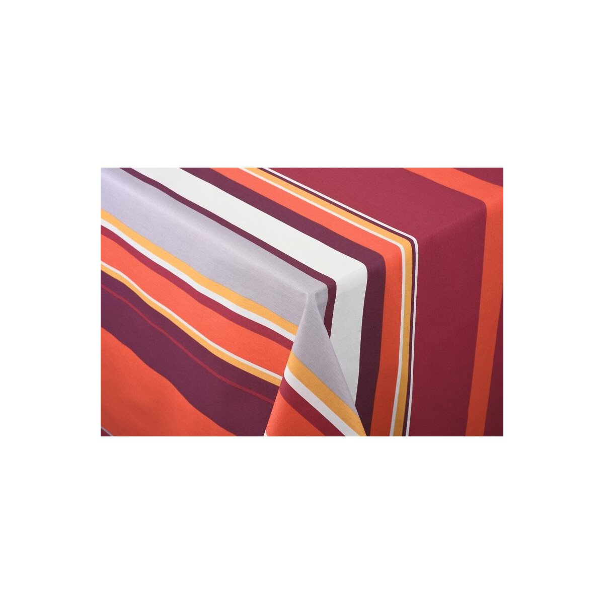 nappe coton enduit à la coupe motif imprimé bayadere rouge 1,4x15m résistante à l'eau et aux tâches grace à sa double enduction acrylique
