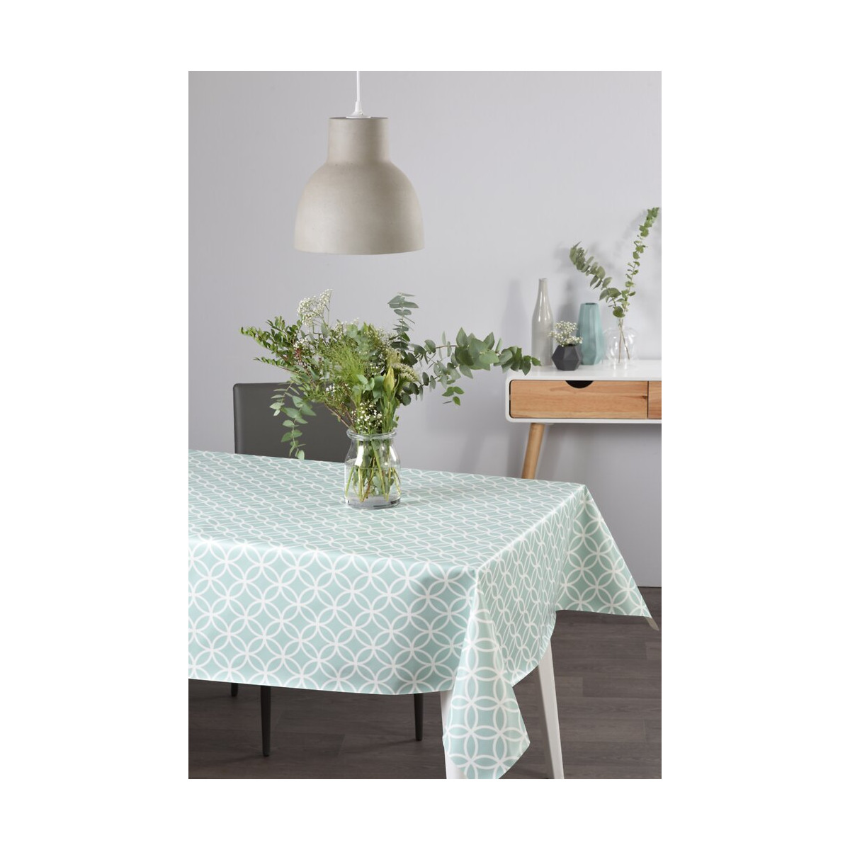 Nappe toile cirée PVC imprimée circle mint carré 140x140cm avec biais