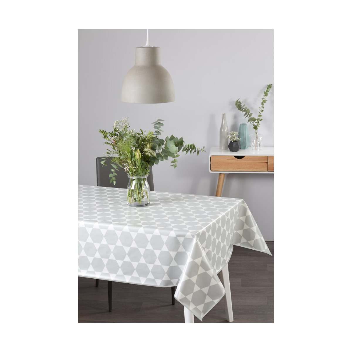 Nappe toile cirée PVC imprimée caline grey rectangle 140x200cm avec biais