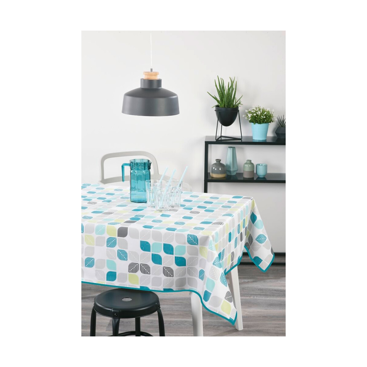 Nappe toile cirée PVC structuré imprimée vintage vert ronde 140cm avec biais