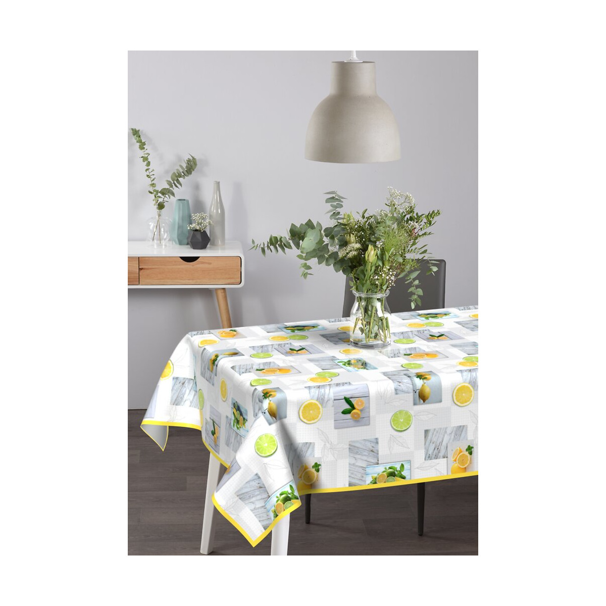 Nappe toile cirée PVC imprimée lemon ronde 140cm avec biais