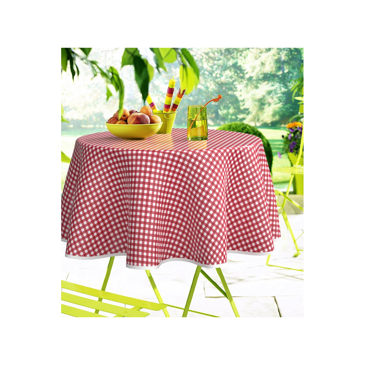Nappe toile cirée vichy rouge ronde