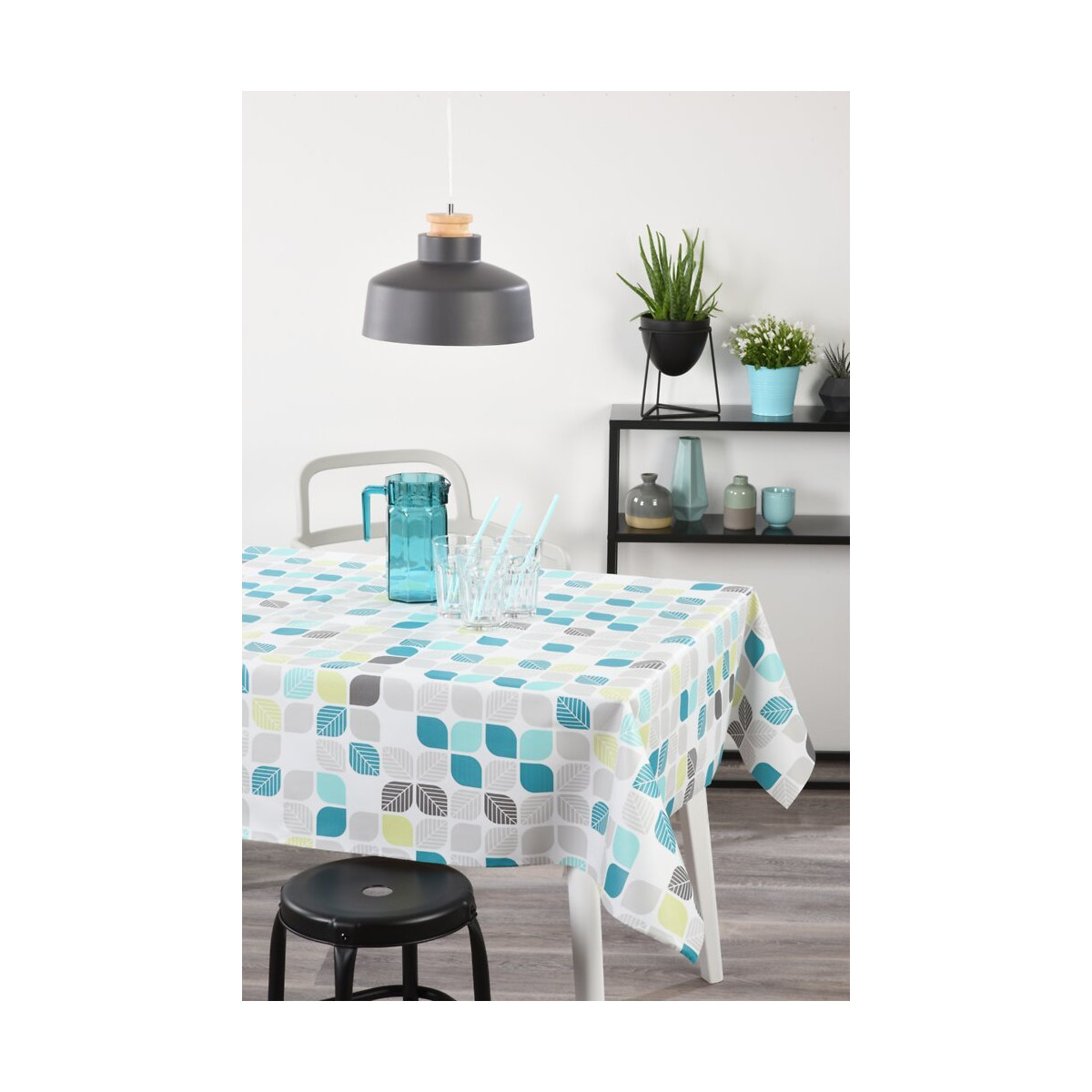 Nappe toile cirée PVC structuré imprimée vintage vert ovale 140x200cm avec biais