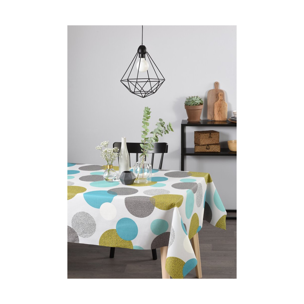 Nappe coton enduit imprimée lola menthe ronde 160cm avec biais