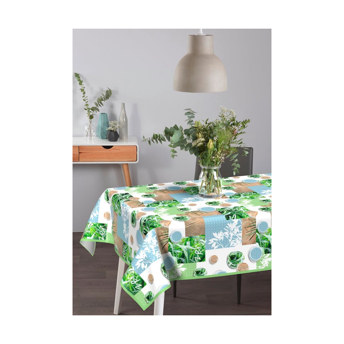 Nappe toile cirée PVC structuré imprimée fresh nature ronde 140cm avec biais