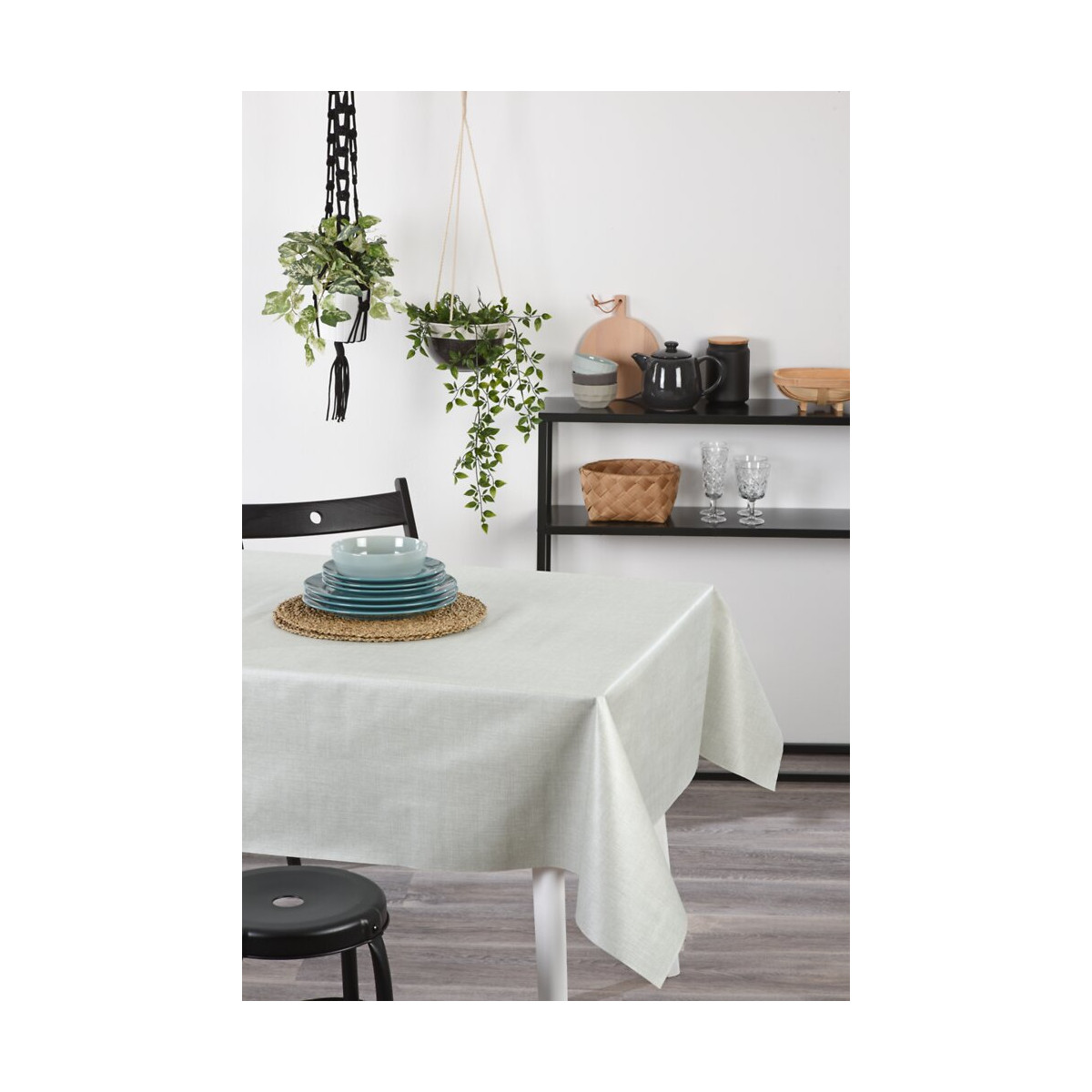 Nappe toile cirée PVC structurée grey rectangle 140x200cm avec biais