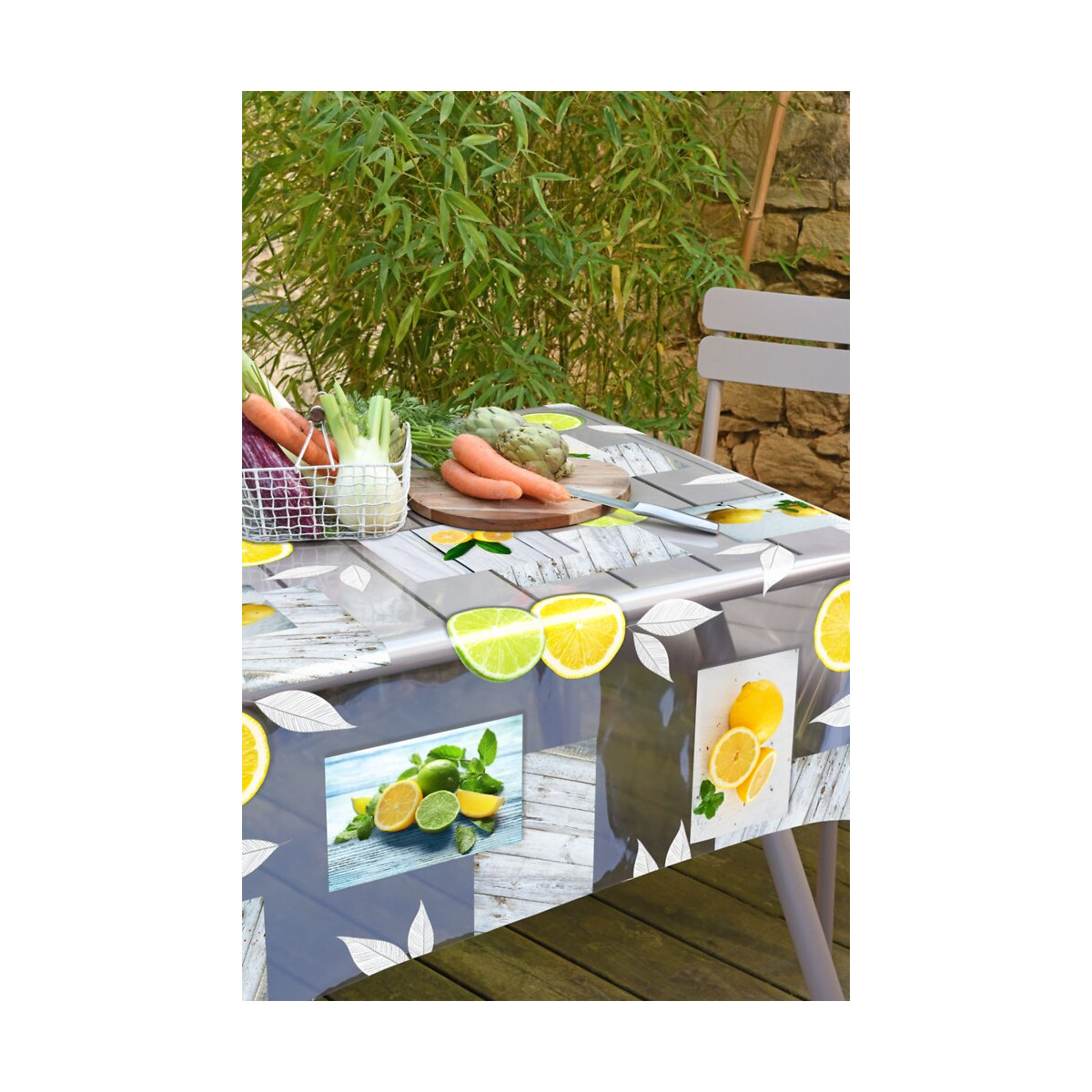 Nappe crystal imprimé transparent lemon rectangle 140x200cm avec biais