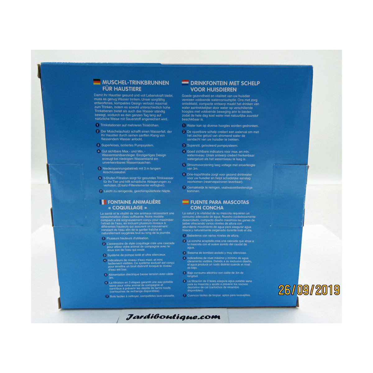 Fontaine a eau Cat Mate 3 Litres abreuvoir à hauteurs multiples dimension: 19 x 19 x 14.5 cm capacité 3 litres. filtre de rechange pour votre fontaine réf 339 . Fontaine a eau Cat Mate 3 Litres abreuvoir à hauteurs multiples • système de pompage isolé pour un fonctionnement très silencieux • fonctionnement basse tension avec câble de raccordement de 3 m • le filtrage à 3 niveaux garantit une eau propre et empêche la formation de dépôts nocifs • grâce à l'accessoire en forme de coquillage, l'eau s'écoule en produisant un son doux qui incite l'animal à boire • repères de niveau max. et min. facilement visibles • gamelles faciles à entretenir, résiste au lave-vaisselle dimension: 19 x 19 x 14.5 cm capacité 3 litres. Photo non contractuelle, car il y a plusieurs vendeurs sur une même fiche produit.