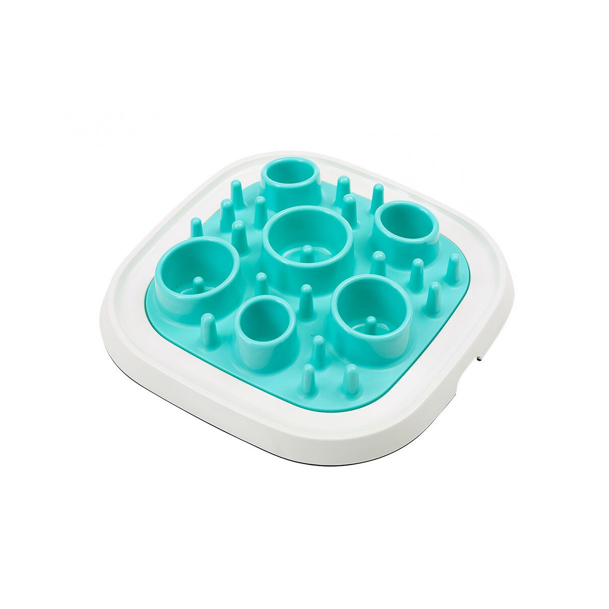 Gamelle Enigma moyen n°11. pour chat et petit chien. dimension 32 x 32 x 6.5 cm . couleur blanc et turquoise. Empêche de manger goulûment. La gamelle interactive Enigma est une gamelle innovante fabriquée dans des matériaux de haute qualité. Cette mangeoire interactive va inciter le chien à manger plus lentement et à ne pas engloutir la nourriture. Cela a pour avantage de prévenir les risques de ballonnements, de vomissements et les troubles digestifs. La gamelle est équipée d'un bord antidérapant pour plus de solidité et de stabilité. Elle convient aussi bien pour les chiens que pour les chats. Elle est également très facile à démonter et remonter, ce qui en facilitera le nettoyage. La mangeoire Enigma ne peut pas être mise au lave-vaisselle. Gamelle Enigma moyen n°11. pour chat et petit chien. dimension 32 x 32 x 6.5 cm . couleur blanc et turquoise. Empêche de manger goulûment. Les chats et les chiens sont des chasseurs par nature et aiment travailler pour leur nourriture. Donc, un bol d'alimentation est en fait très ennuyeux pour eux car ils n'ont rien sur quoi se faufiler, aucune souris à traquer et aucune excitation de la chasse. Heureusement, vous pouvez recréer cette sensation de << travailler pour la nourriture >> avec les bols d'alimentation Enigma. Vous pouvez offrir la nourriture de manière à ce que votre chat ou votre chien y travaille. C'est ce qu'on appelle l'enrichissement alimentaire. L'enrichissement des aliments offre plusieurs avantages : prévient l'ennui et évite les problèmes de comportement . aide à réduire le stress. offre la possibilité d'afficher un comportement naturel. s'assure que les chats et les chiens n'avalent pas leur nourriture. aide à améliorer la digestion et réduit le risque de dilatation gastrique et de vomissements. réduit le risque d'obésité. active, stimule et améliore la concentration. c'est amusant, aide à améliorer la confiance et offre de la variété. Photo non contractuelle, car il y a plusieurs vendeurs sur une même fiche produit.