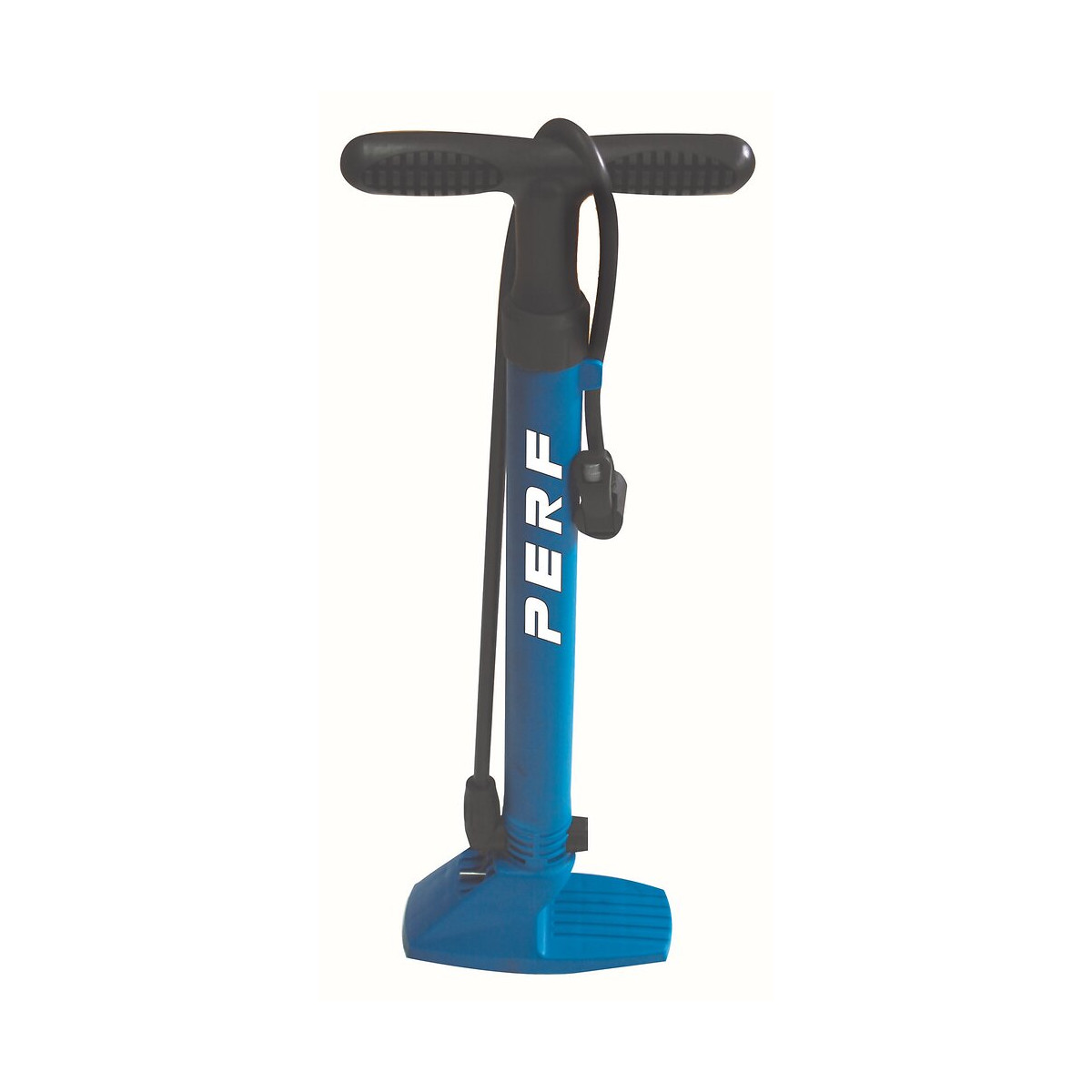 Pompe à pied avec corps plastique. Avec accessoires : - Aiguille à ballon - Embout multi-usages. Pour petite et grosse valve.