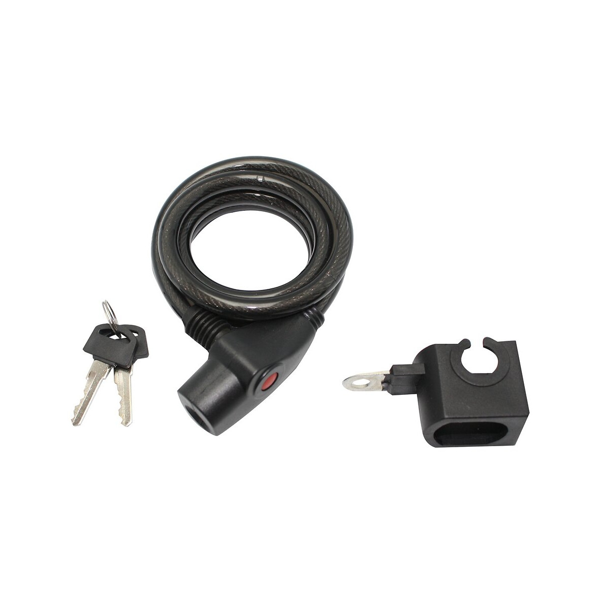 Antivol spirale à clé diamètre. Support tige de selle. Dimensions : diamètre 10 mm - Longueur 1,50 m. 2 clés.