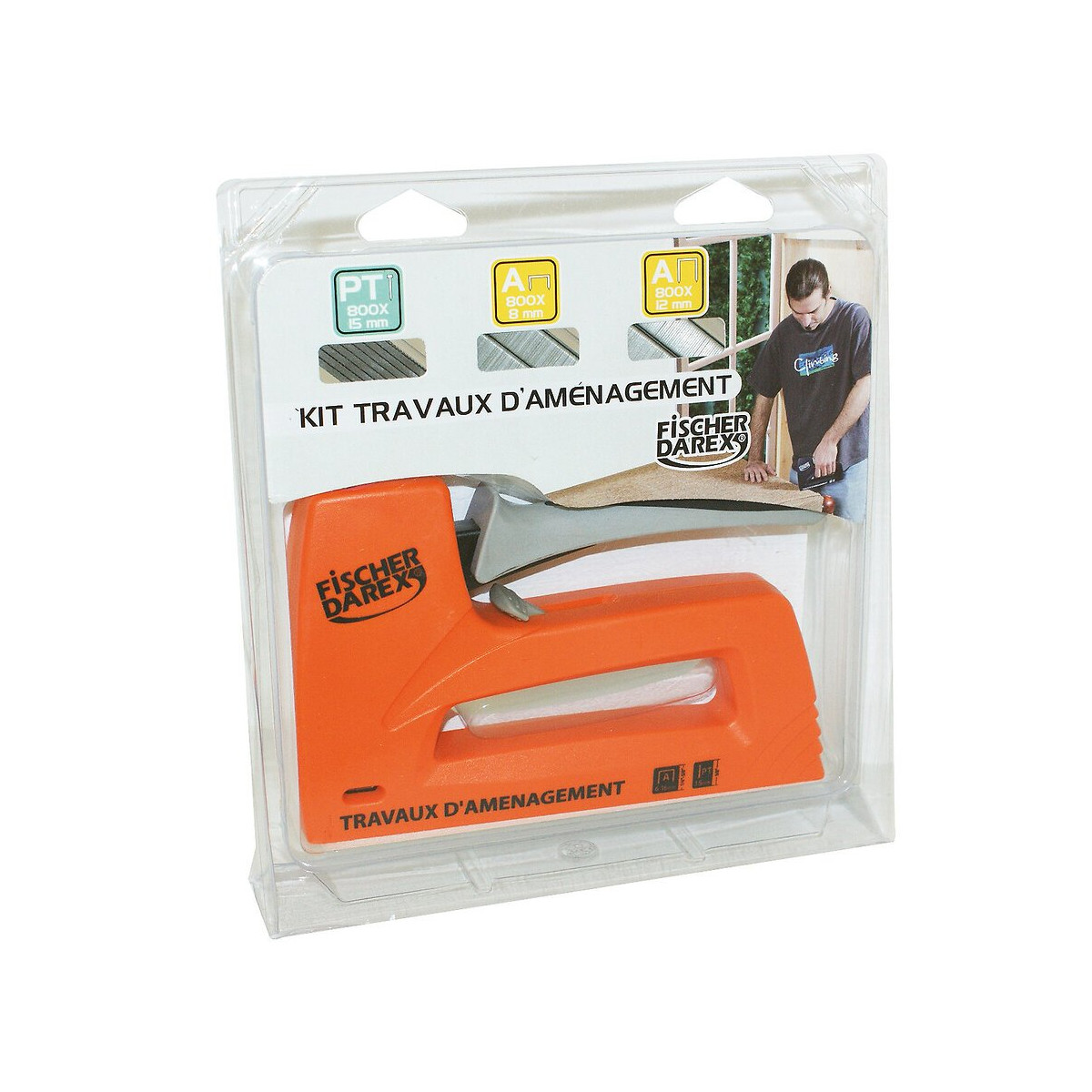 Kit de fixation comprenant : 1 agrafeuse multi MEK5314M, 800 agrafes de 8mm, 800 agrafes de 12mm, et 800 pointes de 15mm.Spécifications techniques