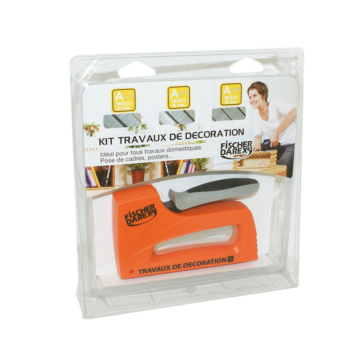 Kit pour travaux de décoration comprenant : 1 agrafeuse, 800 agrafes 6mm, 1600 agrafes 8mm.Spécifications techniques