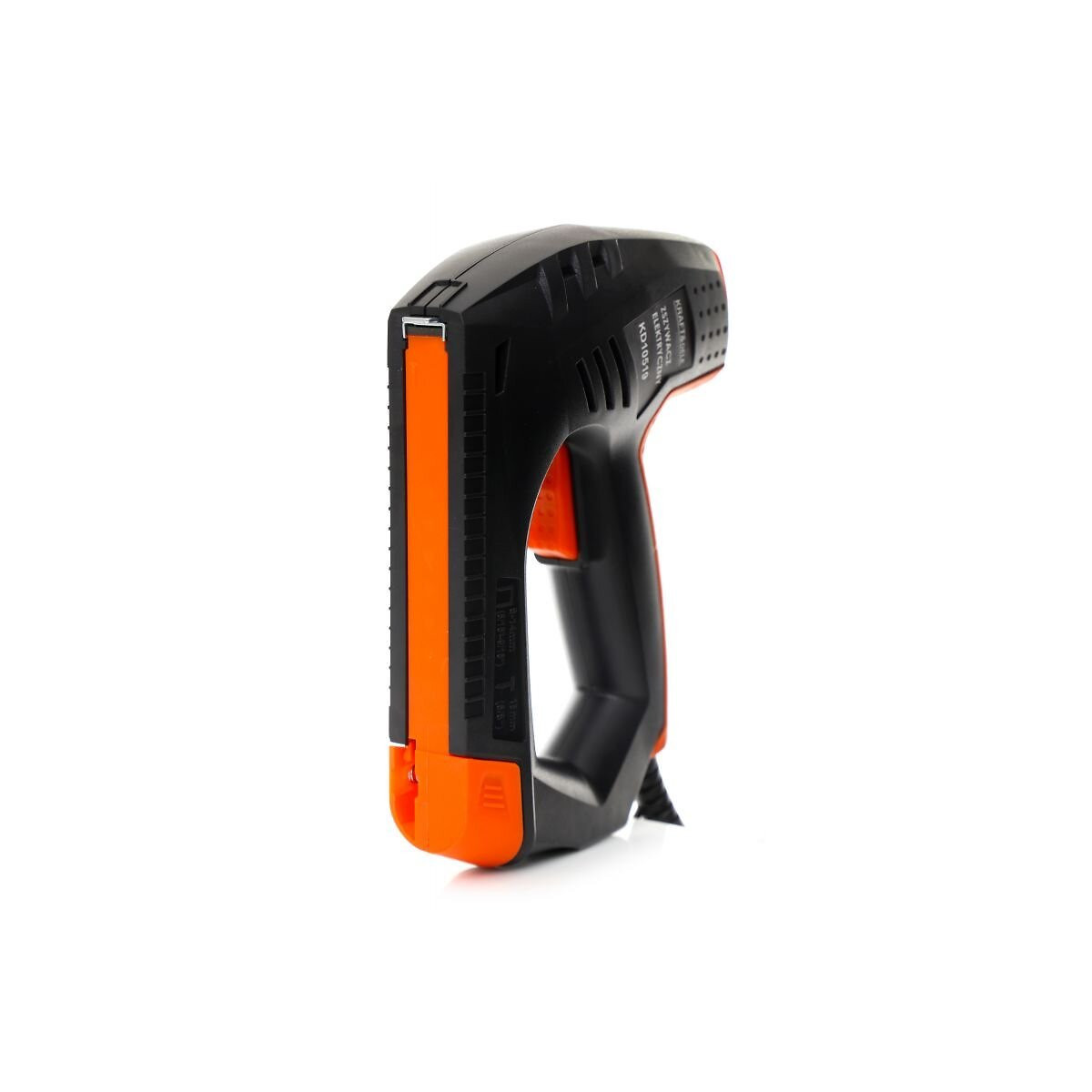 L'agrafeuse électrique est un appareil polyvalent pour la maison, l'atelier ou l'entreprise artisanale; CARACTÉRISTIQUES TECHNIQUES: Puissance : 50 W; Taille des agrafes : 8-14 mm; Longueur des clous : 15 mm; Alimentation : 230 V; Nombre de coups : 30/min; Type d'agrafes : T50, T53; Type de clous : T; Épaisseur des agrafes : 0.75 mm; Largeur des agrafes : 11.3 mm; Épaisseur des clous : 1.2 mm; Nombre maximal d'agrafes : 400; Nombre maximal de clous : 100