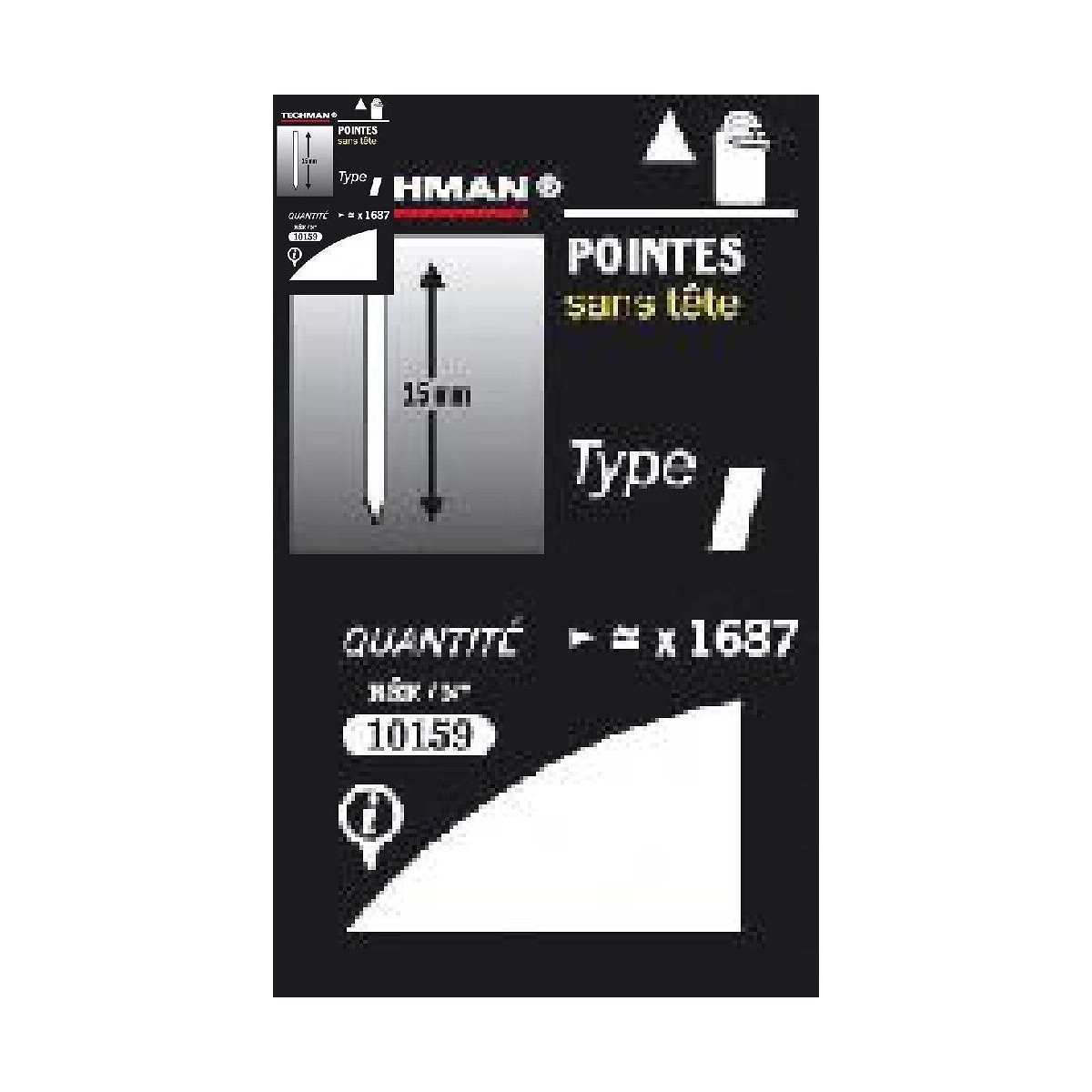 Pointes sans tête. 1687 pièces. Conditionnement par 10 blisters.