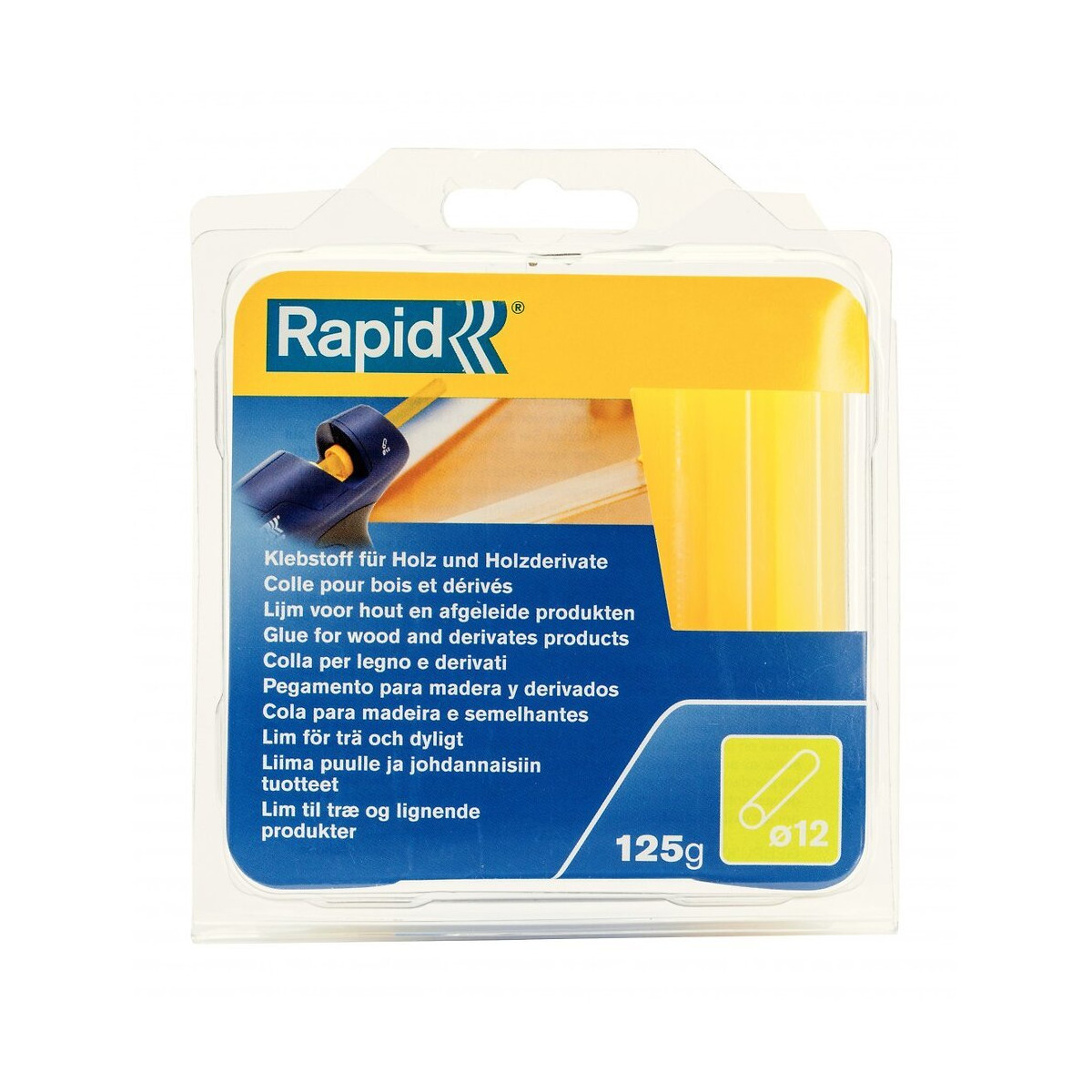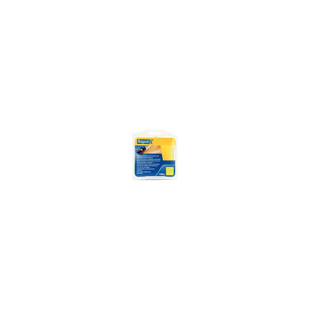 Marque du produit: RAPID Usage du produit: Pour pistolets à colle D12. Nombre de pièces: 1 Produit emballé : hauteur (en cm): 13.3 Produit emballé : largeur (en cm): 11.3 Produit emballé : profondeur (en cm): 2.7 Produit emballé : poids (en kg): 0.158 Mentions légales: Dangereux. Respecter les précautions d'emploi Indication du geste de tri (triman): Non