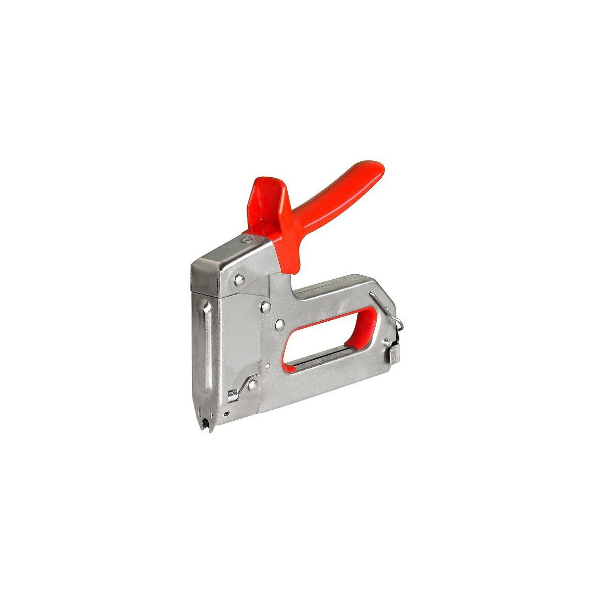 Corps en métal chromé. Poignée ergonomique gainée avec anse de verrouillage en position fermée. Frappe anti rebonds. Très grande puissance de frappe pour une bonne pénétration du cavalier dans la plupart des matériaux. Pour les câbles électriques, de téléphone, hi-fi, télévision, ordinateur, les systèmes d’alarme, la serrurerie, fixer des grillages, …