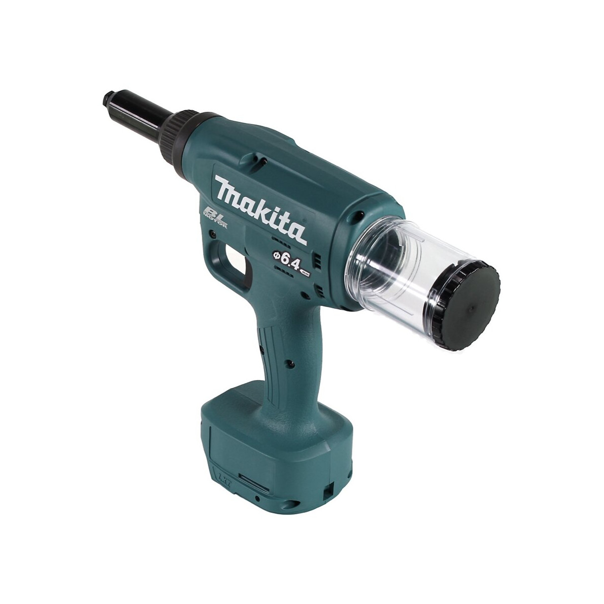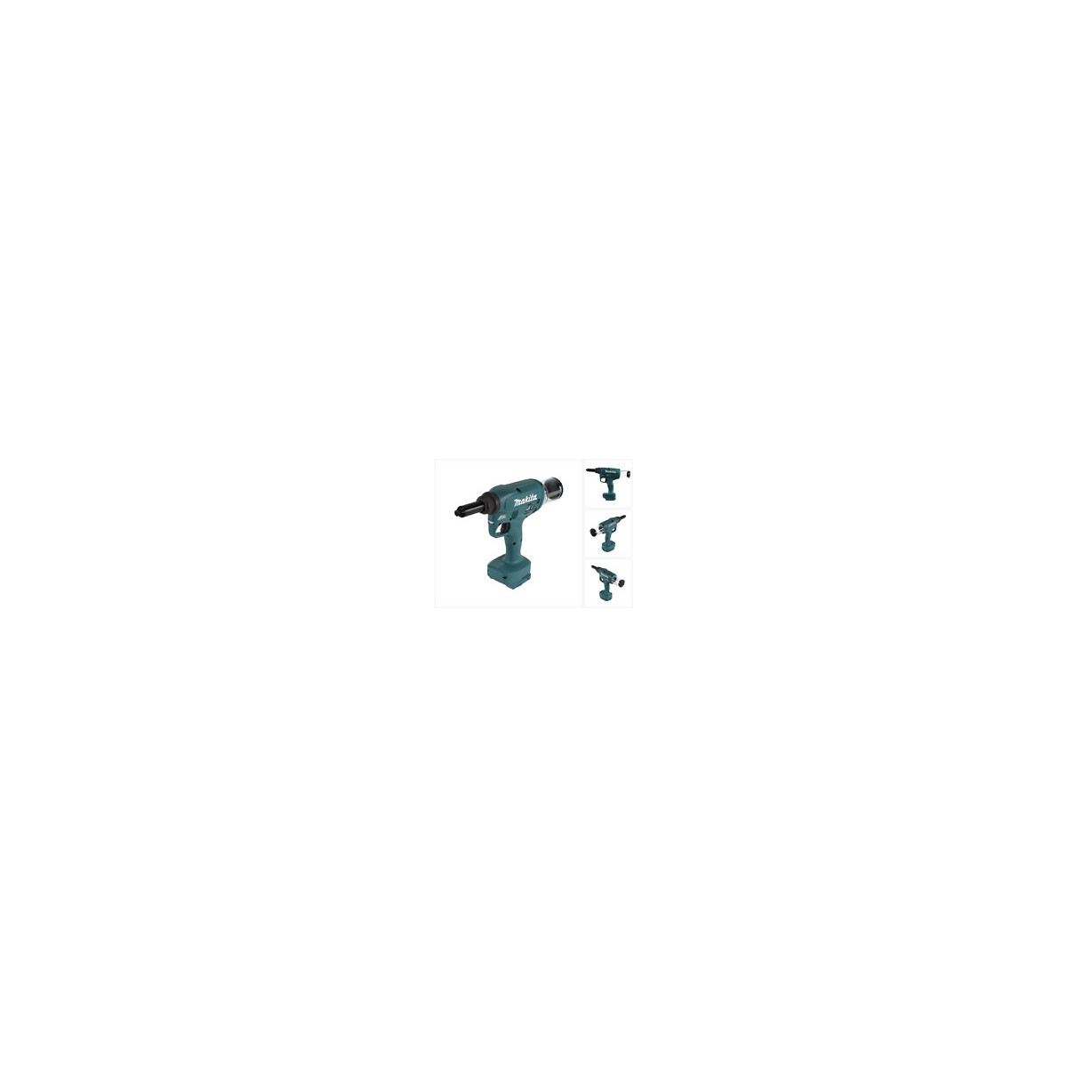 Contenu du paquet: - 1x Makita DRV250 Riveteuse sans fil - 1x Tube de réglage Makita - 1x Set d'accessoires : rivets Makita Ø 4,8mm ( 191C03-4 ) - 1x Set d'accessoires : rivets Makita Ø 6,0mm ( 199725-2 ) - 1x Graisse Makita ( 191D57-7 ) - sans batterie, sans chargeur Description du produit: La riveteuse DRV 250 Z de la marque Makita est spécialement indiquée pour la pose des rivets aveugles. Elle est équipée d'un moteur sans balai qui lui garantit une très bonne résistance ainsi qu'une plus longue durée de vie. Le design compact de son boîtier permet de travailler près des bords, à une distance minimale de 26 mm. Elle dispose également d'un réservoir transparent pour un meilleur contrôle des tiges utilisées, ainsi que d'un système de maintient du rivet grâce auquel il n'est plus nécessaire de le maintenir à la main. Cette riveteuse sans fil est en plus dotée d'un système de protection des outils et de la batterie qui coupe automatiquement l'alimentation du moteur en vue de prolonger la durée de vie de l'outil et de la batterie. En cas de surcharge, de surchauffe ou de décharge totale de cet outil et/ou de sa batterie, il cesse automatiquement de fonctionner. Makita a également équipé cette riveteuse d'un double éclairage LED pour plus de sécurité dans des zones de travail peu éclairées. Elle est ainsi parfaitement adaptée à la pose rapide et facile des rivets aveugles. Spécifications techniques: Tension : 18 V Max. Traction : 20 kN Moteur : sans balai Diamètre du rivet : 4,8-6,4 mm Longueur de course : 30 mm Diamètre de coupe 400 N/mm² : 2,4-6,4 mm Diamètre de coupe 600 N/mm² : 2,4-4,8 mm Niveau de pression sonore : 74 dB (A) Facteur (K) : 3 dB (A) Vibrations : 2,5 m/s2 ou moins Facteur (K) : 1,5 m/s2