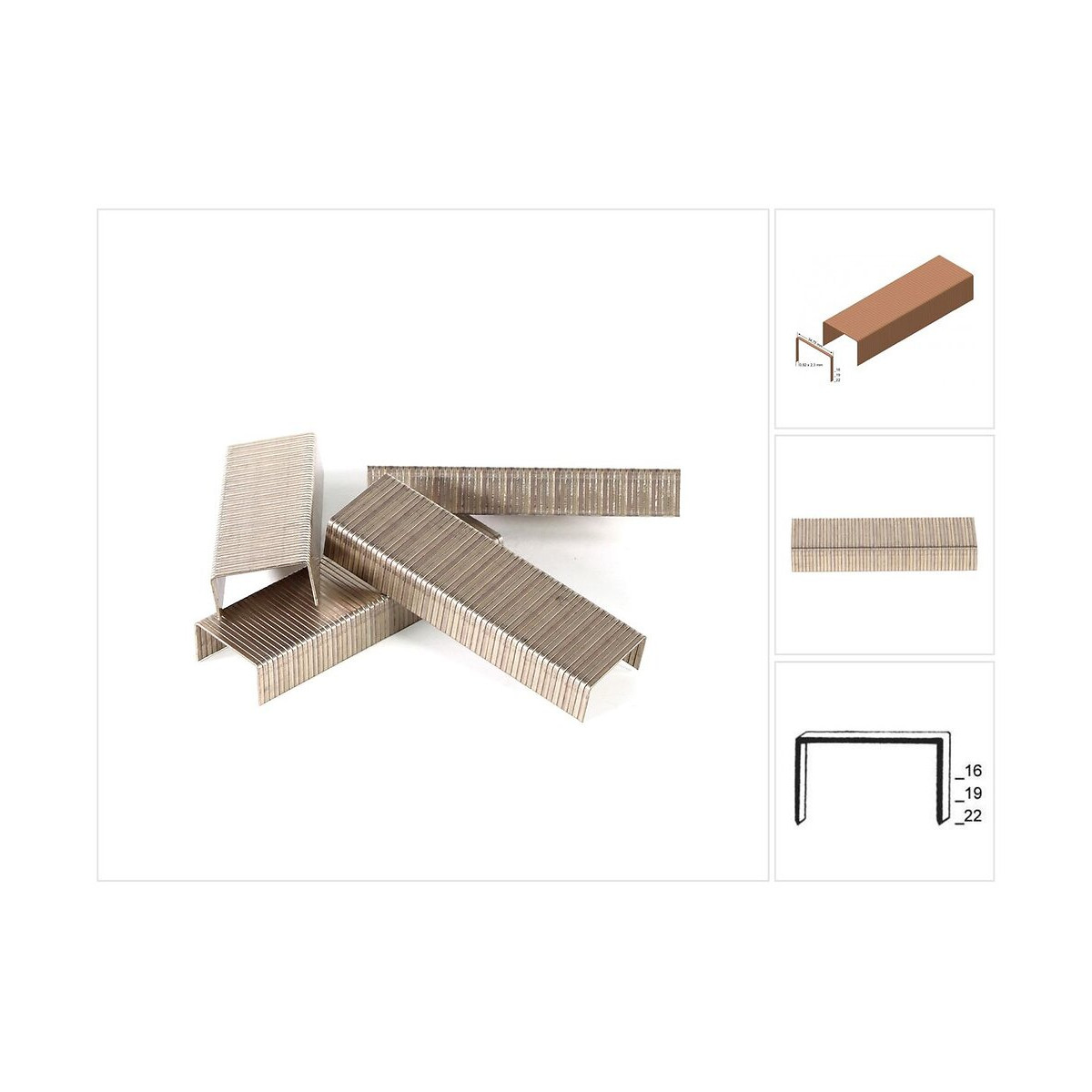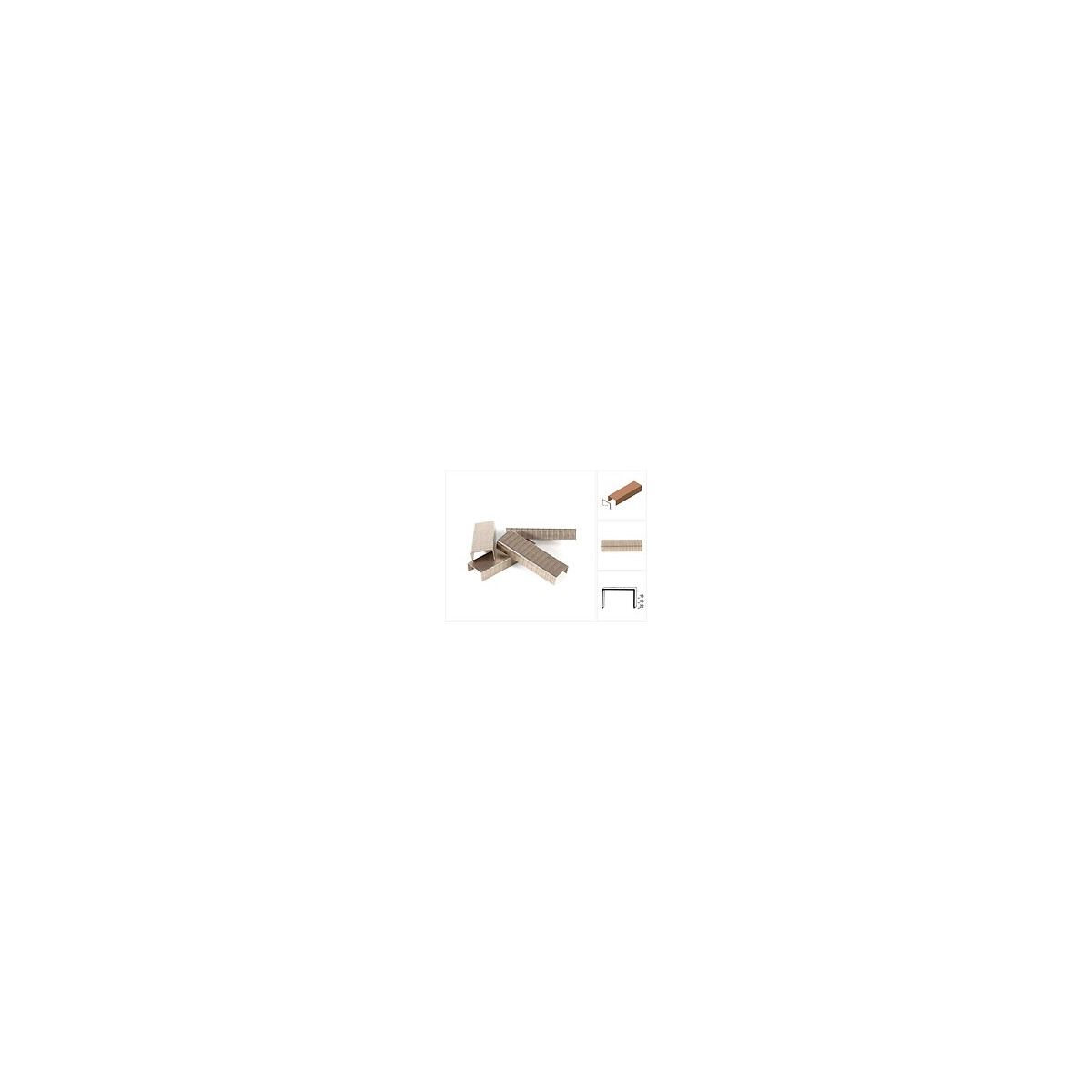 Contenu du paquet: - 10000x Prebena B19CLF Agrafes 19mm bronzées Description du produit: Les agrafes Prebena B16CLF sont en acier bronzé. Les agrafes sont idéales pour la fermeture des cartons. La largeur du dos de la pince est de 34,75 mm. Spécifications techniques: Type: B Longueur d'agrafe: 19mm Forme de la tête: Clip de dos Largeur arrière: 34,75 mm Taille du fil: 0,92 x 2,30 mm Materiel: Acier bronzé Coupe: C