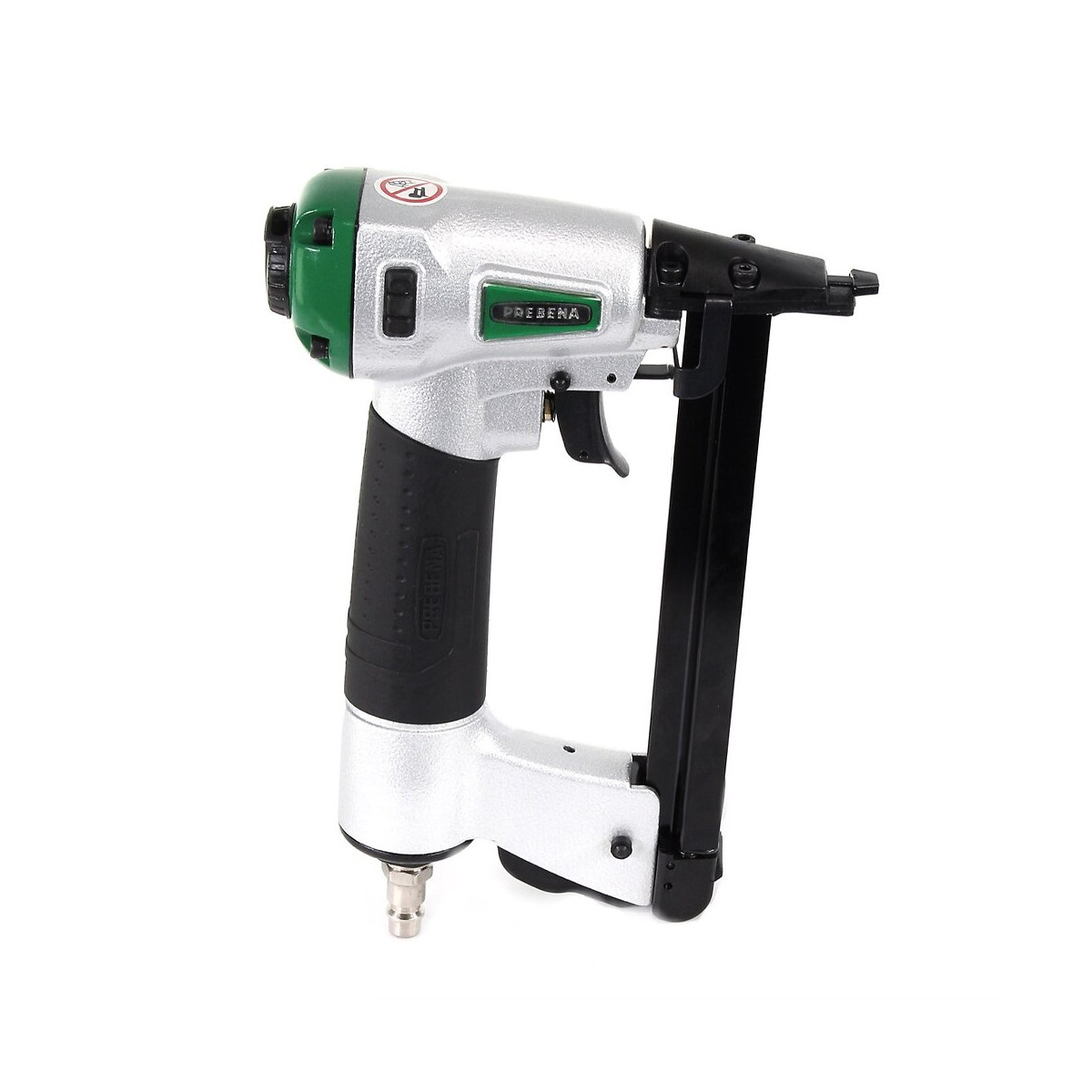 Contenu du paquet: - 1x Prebena DNPF16 Agrafeuse pneumatique Description du produit: L'agrafeuse pneumatique Prebena DNPF16 est compacte et légère. Elle constitue une alternative puissante au pistolet d'agrafage manuel. L'agrafeuse pneumatique est en métal pour plus de robustesse et elle convient aux agrafes du type PF 06 -16 mm. La machine est munie d'un magasin inférieur, d'un dispositif de sécurité de déclenchement et d'un silencieux. De plus, vous pouvez ajuster la pression d'air selon vos besoins. La machine est très bien adaptée pour les feutres de toiture, isolation, feuille, affiche, toile, tapis, dos de meubles, tapisserie d'ameublement, grillage etc. Spécifications techniques: Pression de service: 4 - 7 bar Consommation d'air: 0,29 l / clouage Dimensions: 230 x 48 x 166 mm Poids: 750 g