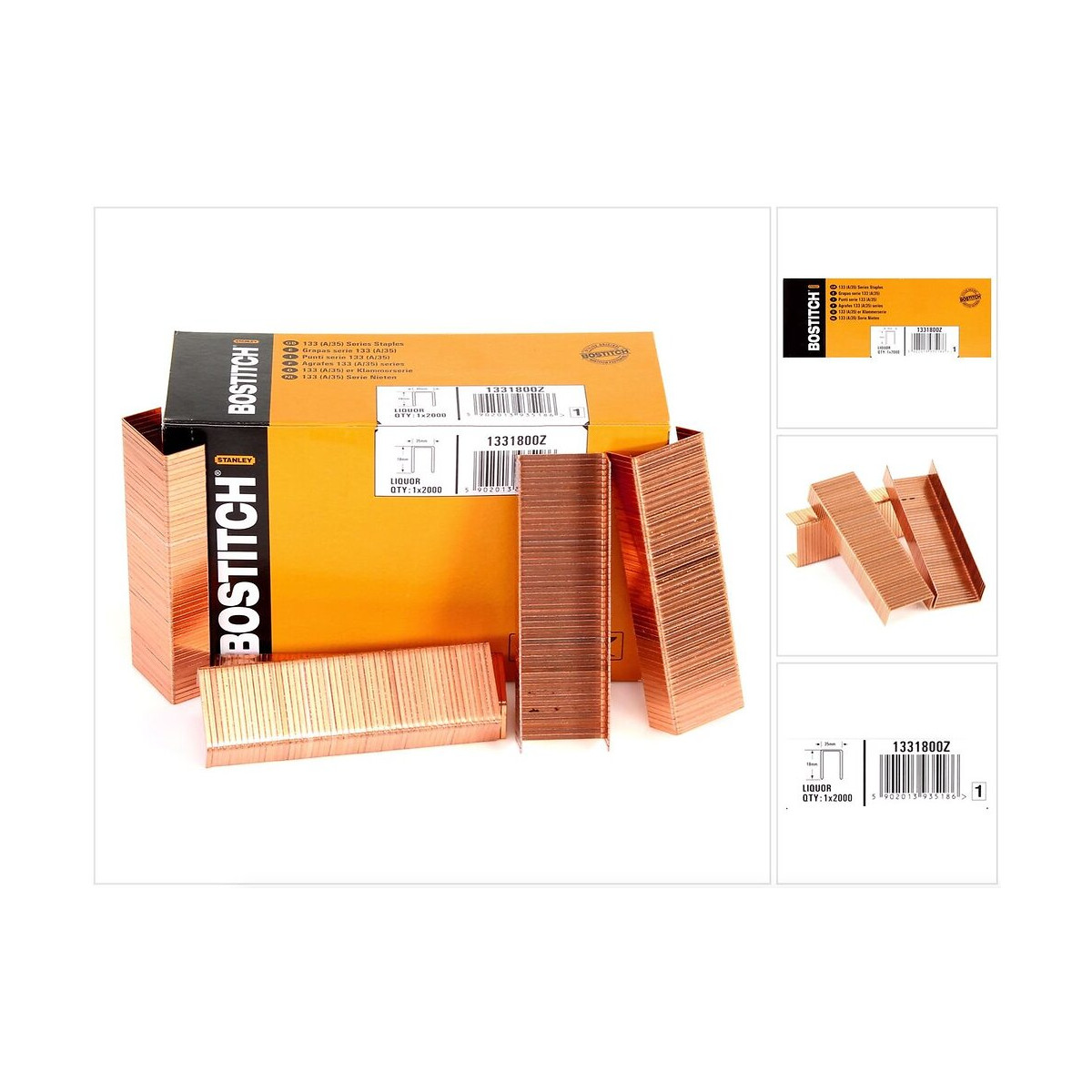 Contenu du paquet: - 1x 2000 pièces Bostitch A3/4 Agrafes carton 18 mm ( 1332200Z ) Description du produit: Les agrafes carton de Bostitch conviennent à la fixation d’emballages en carton. Elles font partie du groupe de fixations A et sont compatibles avec les modèles Bostitch DSA-3522-E / DS-3519-E / DSA-3519-E / DSA3522-E / MS-3519-E. Spécifications techniques: Longueur: 18 mm Largeur de la couronne: 35.0 mm Finition: Alcool Quantité/carton: 2000 Pièces.