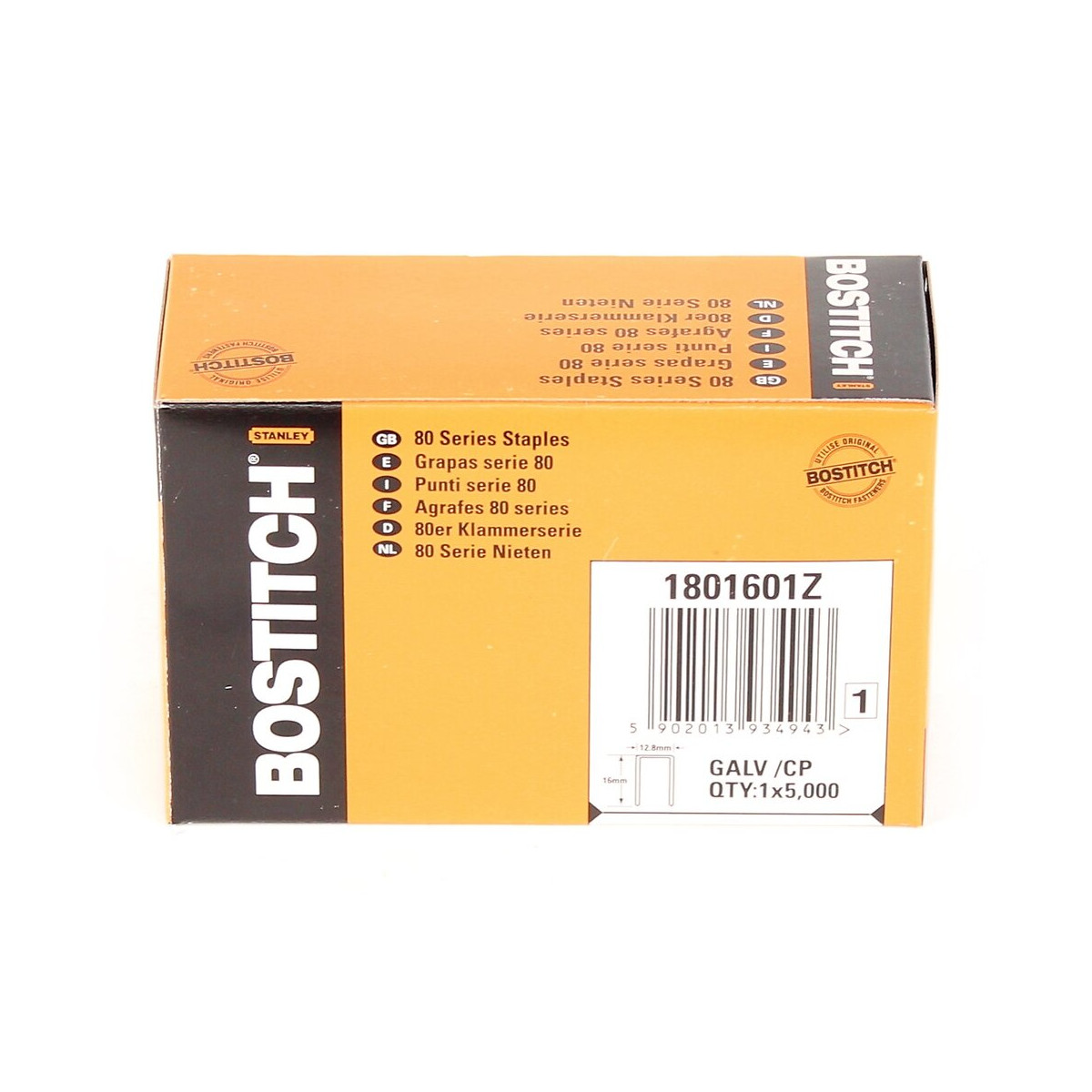 Contenu du paquet: - 5.000 x Agrafes série 80 de base, longueur 16 mm (1801601Z) Description du produit: Ces agrafes Bostitch sont idéales pour la fermeture des cartons et autres matériaux d'emballage. La largeur du dos des pinces est de 12,8 mm et la longueur de 16 mm. Spécifications techniques: Numéro d'article: 1801601Z Description: 80 PIPES 16MM GALV 5M Longueur: 16 mm Largeur du dos: 12,8 mm Revêtement: Galv Profil de pointe: pointe biseautée Quantité / Carton: 5000