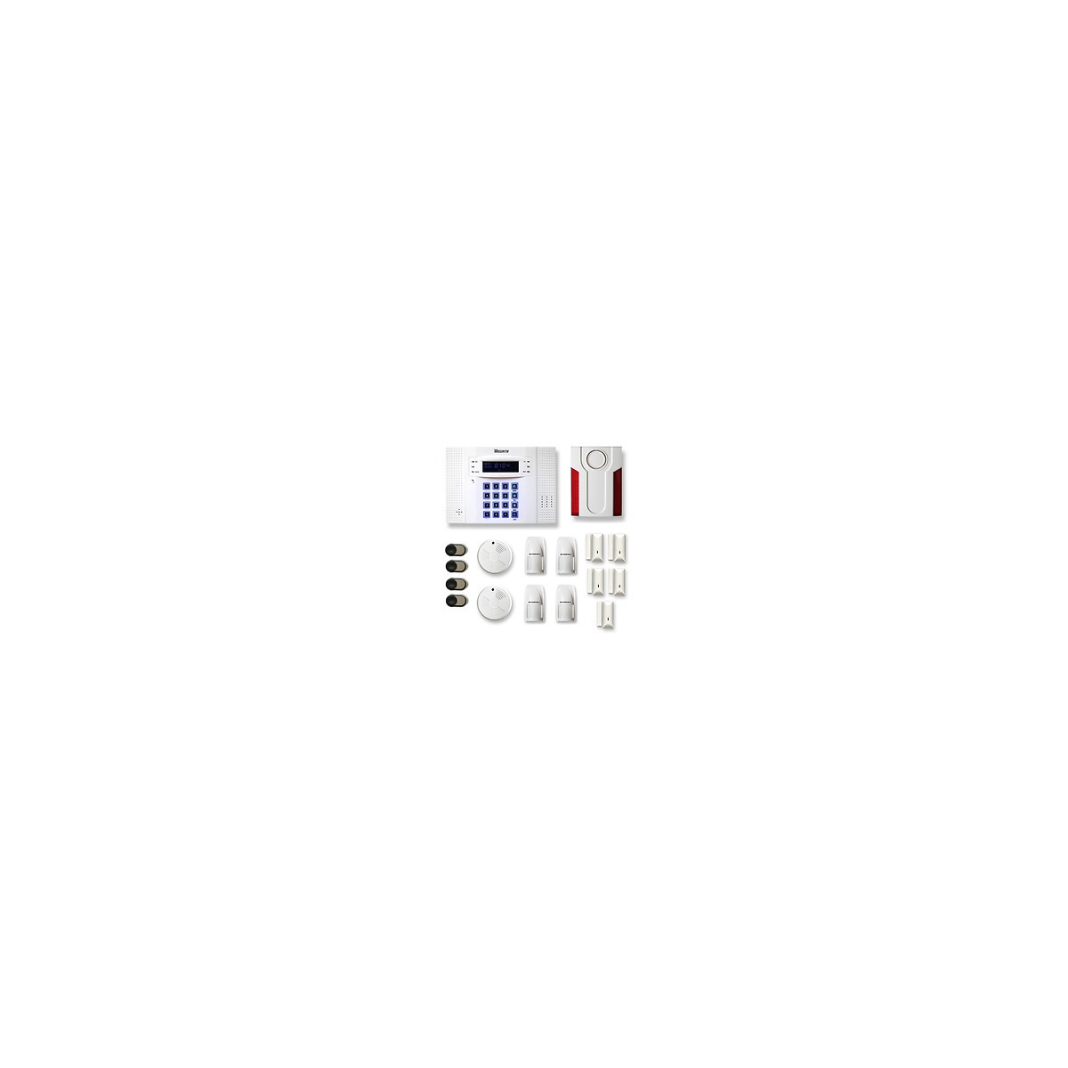 Contenu : 1 Centrale Alarme DNB - 4 détecteurs de mouvements - 5 détecteurs d'ouvertures - 4 télécommandes design - 1 sirène extérieure MD334R - 2 détecteurs de fumée Caractéristiques techniques : - Synthèse vocale en Français - Mode d'activation totale ou partielle - Activation et désactivation par plages horaires journalières - Ecran LCD rétro-éclairé - Délais d'entrée et sortie de 0 à 255 secondes - Temporisation sirène(s) de 0 à 30 min - Enregistrement 4 numéros de téléphones (GSM et/ou fixe) - Enregistrement 2 centres de télésurveillance (Protocole ID contact) - Fonction anti-arrachement - Fonction coupure de ligne téléphonique - Historique des événements - Report défaut détecteur (batterie vide, arrachement, perdu) - Modèle protégé contre le piratage (1 milliard de combinaisons) Caractéristiques physiques : - Couleur : Blanc - Dimensions : 23 X 16 X 3cm - Transformateur : DC15V 2A - Batterie : accus 7,2V AAA500mAh Alarme sans fil L'ensemble des accessoires présents dans ce pack sont connectés à la centrale par une technologie sans fil d'une portée de 100m en champ libre. Cela permet une installation simple des éléments sans aucun raccordement filaire. Vous avez la possibilité de connecter jusqu'à 32 accessoires sans fil, 8 claviers ou télécommandes, 8 sirènes et 9 accessoires filaires. Après l'installation de l'alarme, vous pouvez ajouter de nouveaux accessoires selon vos besoins. Alerte sur téléphone Cette alarme peut être reliée à votre box ADSL/Fibre ou ligne France Telecom pour être averti directement sur votre téléphone (fixe ou portable) d'une intrusion. En cas d'alerte vous recevrez un appel téléphonique de votre centrale. Vous pouvez enregistrer jusqu'à 4 numéros à appeler en cas de déclenchement de la centrale. Cette alarme est compatible avec l'ensemble des Box internet : Free, Orange, SFR, Numéricable, Bouygues, Sosh... Le raccordement à votre box se fait par un câble RJ11 qui est fourni avec l'alarme. Quand l'alarme se déclenche vous recevez un appel. Vous entendez tout ce qui se passe chez vous grâce au microphone intégré. Détecteurs de mouvements Le détecteur de mouvement est un équipement de sécurité qui permet de signaler la présence ou le mouvement d'une personne dans un espace surveillé. Il fonctionne par infrarouge, ce qui lui permet de capter les formes, les déplacements ou les volumes dégageant de la chaleur. Il couvre une surface de 7m dans un angle de 110°. Ils sont conçus pour laisser un animal domestique de moins de 12 kg circuler sans déclencher l'alarme. Le salon, les escaliers et couloirs, très fréquentés par les voleurs, peuvent être efficacement contrôlés par cet outil. Détecteurs d'ouvertures Ce capteur permet de contrôler toutes les ouvertures de la maison : portes, fenêtre, lucarnes, baies vitrées...Il comprend deux parties qui se séparent à l'ouverture, ce qui déclenche systématiquement l'alarme. Les accessoires sont dotés de piles lithium qui fonctionnent durant 2 ans en moyenne. Cette autonomie permet aux détecteurs de rester longtemps en veille, garantissant la continuité de la protection sur une longue période. Activation partielle ou totale Vous pouvez régler l'alarme en l'activant seulement dans certaines zones. Si vous êtes chez vous, vous pouvez par exemple armer les détecteurs d'ouverture et désactiver les détecteurs de mouvement afin de circuler librement chez vous. Alarme Programmée Nos techniciens s'occupent de la programmation avant expédition. L'ensemble des accessoires seront déjà configurés avec votre alarme. Il vous suffira alors de fixer l'alarme et les accessoires à vos murs, portes et fenêtres. En cas de soucis, nos techniciens restent disponibles par email ou téléphone. Application Apple / Android Avec l'option GSM, vous pouvez utiliser l'application Tike Sécurité vous permettant de gérer à distance via un smartphone ou tablette votre alarme. Cette application vous permet : D'activer, désactiver et mettre votre alarme en mode partiel / De récupérer l'état de votre alarme / De créer des comptes de gestion de l'alarme / Piloter la domotique connectée à l'alarme. L’option GSM nécessite une carte SIM dédiée à la centrale. Les opérateurs compatibles sont SFR, Free et Bouygues.