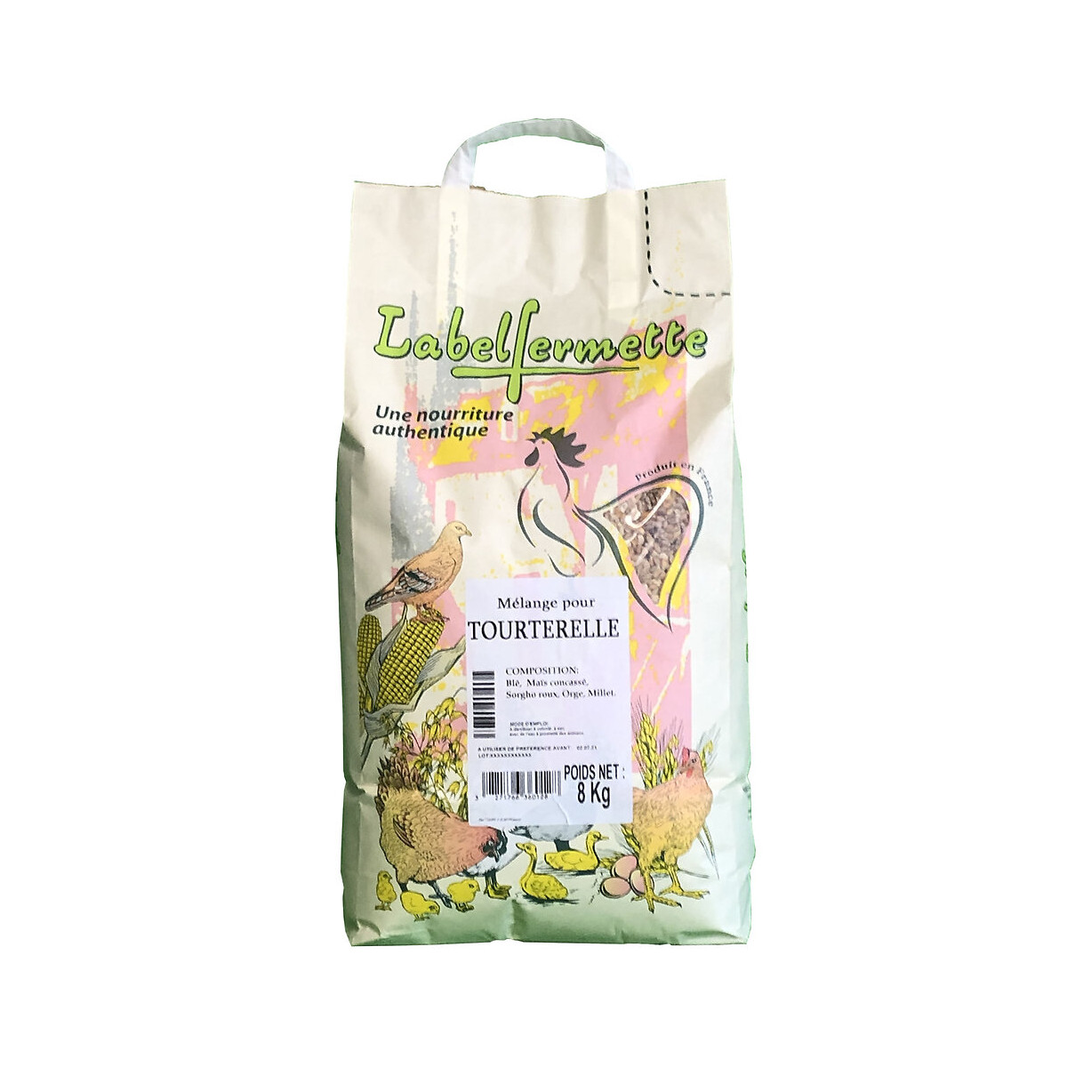 Mélange de céréales pour tourterelles et petites volailles et Oiseaux nature, sac 8kg. A conserver dans un endroit frais et sec, à l'abri de la lumière. Ce mélange de graines pour tourterelles tout spécialement formulé pour répondre à leurs besoins. Convient aussi pour les petites volailles en élevage amateur : cailles, gallinnettes, et oiseaux du ciel. Eau propre et fraiche à volonté.Spécifications techniques