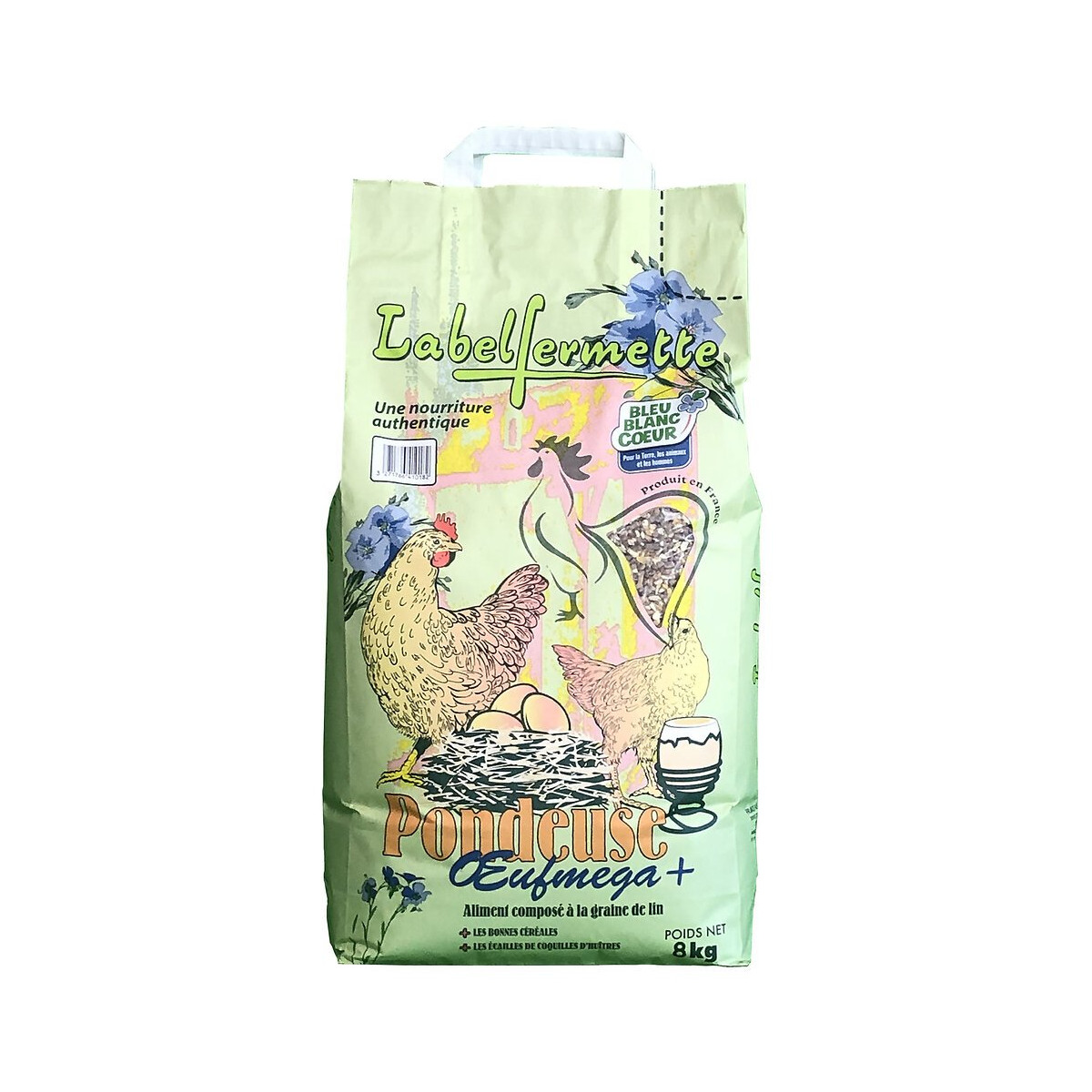 Mélange complet pour poules pondeuses "Bleu Blanc Coeur", à base de graine de lin (riche en Oméga 3 naturel), l'aliment complet +les bonnes céréales sélectionnées, avec écailles de coquilles d'huîtres, sac 8kg.Mieux nourrir, pour mieux se nourrir Garanti sans colorant, ni arôme artificiel et sans substance médicamenteuse. A conserver dans un endroit frais et sec, à l'abri de la lumière. A distribué à volonté, mettre à disposition de l'eau fraîche et propre.Spécifications techniques