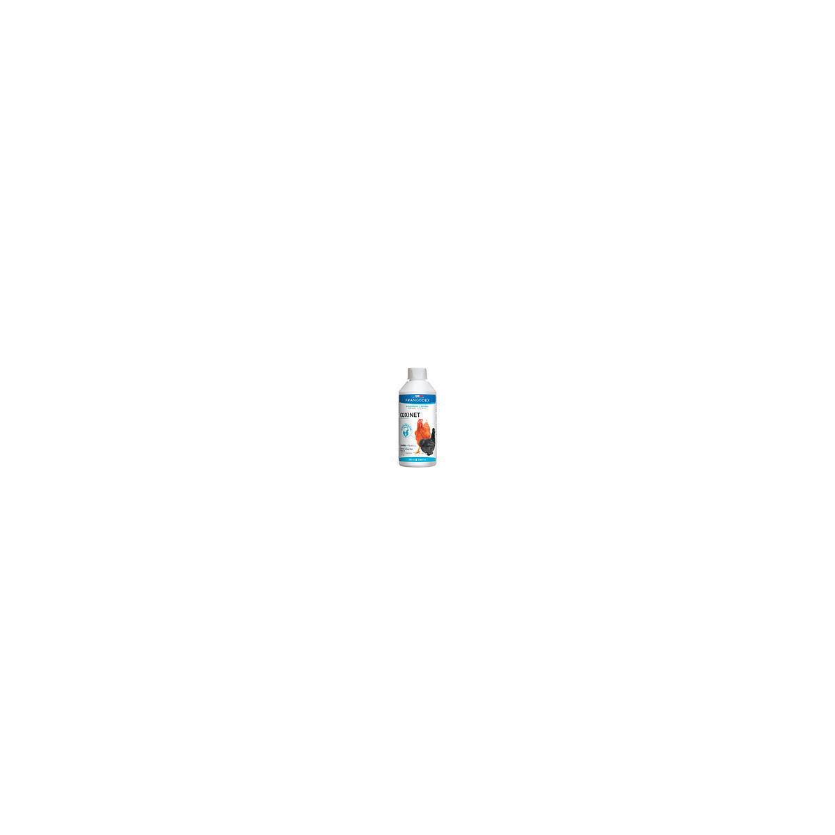 complément alimentaire coxinet , flacon de 250 ML pour volaille . Les diarrhées parasitaires ou bactériennes sont fréquentes chez les volailles, elles peuvent induire des lésions intestinales importantes et être responsables d'une diminution de la fréquence de ponte. COXINET FRANCODEX est un produit d'origine naturelle à base d'huile de coque de noix de cajou, pour le soutien du fonctionnement digestif des volailles. Les + produits: -A base d'huile de coque de noix de cajou -Aide au maintien de l'équilibre digestif complément alimentaire coxinet , flacon de 250 ML pour volaille . Description: Les diarrhées parasitaires ou bactériennes sont fréquentes chez les volailles, elles peuvent induire des lésions intestinales importantes et être responsables d'une diminution de la fréquence de ponte. COXINET FRANCODEX est un produit d'origine naturelle à base d'huile de coque de noix de cajou, pour le soutien du fonctionnement digestif des volailles. Mode d'emploi: Diluer 5 ml de produit (une cuillère à café) dans 1 litre d'eau de boisson pendant 7 jours. Renouveler le traitement si besoin. · PRÉCAUTIONS D'EMPLOI : COXINET s'utilise en complément d'une bonne hygiène de vie des volailles : donner une alimentation équilibrée et procéder à une transition lors de tout changement alimentaire. Veiller au bon état corporel des volailles et assurer une bonne hygiène des lieux de vie des animaux. Renouveler l'eau tous les jours. Tenir hors de portée des enfants. A conserver dans un endroit frais et sec, à l'abri de la lumière. Bien refermer après usage. Ce produit n'est pas un médicament, si les symptômes persistent, consulter un vétérinaire Composition: Eau osmosée. Additifs : émulsifiant (E 484), substances aromatiques : huile de noix de cajou (200g/L), éthanol. Constituants analytiques : protéines brutes <1%, matières grasses brutes 29,8%, cendres brutes <1%, cellulose brute <0,2%, humidité 41%, lysine <0,01%, méthionine <0,01%, sodium <0,2%. Photo non contractuelle, car il y a plusieurs vendeurs sur une même fiche produit.