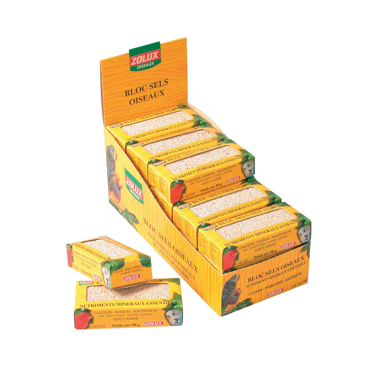 Ce bloc de sel fournit les nutriments minéraux indispensables au bon développement de vos canaris, oiseaux exotiques et perruches. Il permet de renforcer leurs ossatures et contribue au fonctionnement de leurs appareils digestifs. Contenance : 90 g.Spécifications techniques