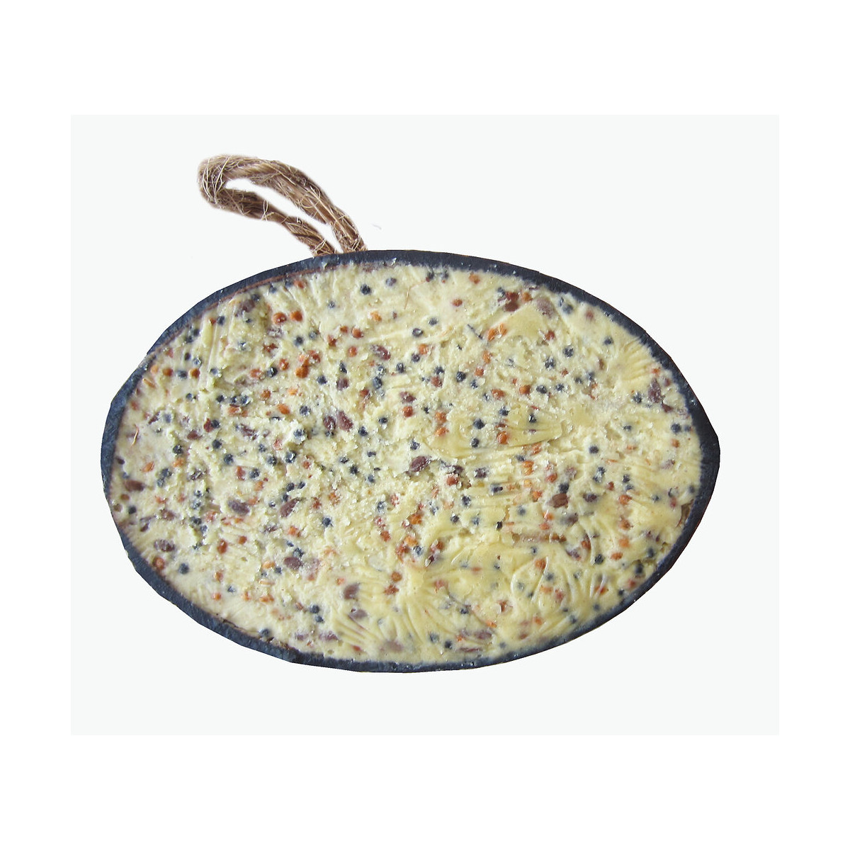 Demi noix de coco fourrée à la graisse et aux insectes, à suspendre au moyen du cordon intégré. Existe aussi en saveur fruits rouges et aux vers de farine. Tous les aliments pour oiseaux CAILLARD sont sans huile de palme. conseils d'utilisation Suspendez la demi-noix à une branche d'arbre, à 1,50 m du sol minimum, dans un endroit calme, à l'abri de la chaleur et bien dégagé pour que les oiseaux puissent surveiller l'arrivée des prédateurs (en particulier les chats).Spécifications techniques
