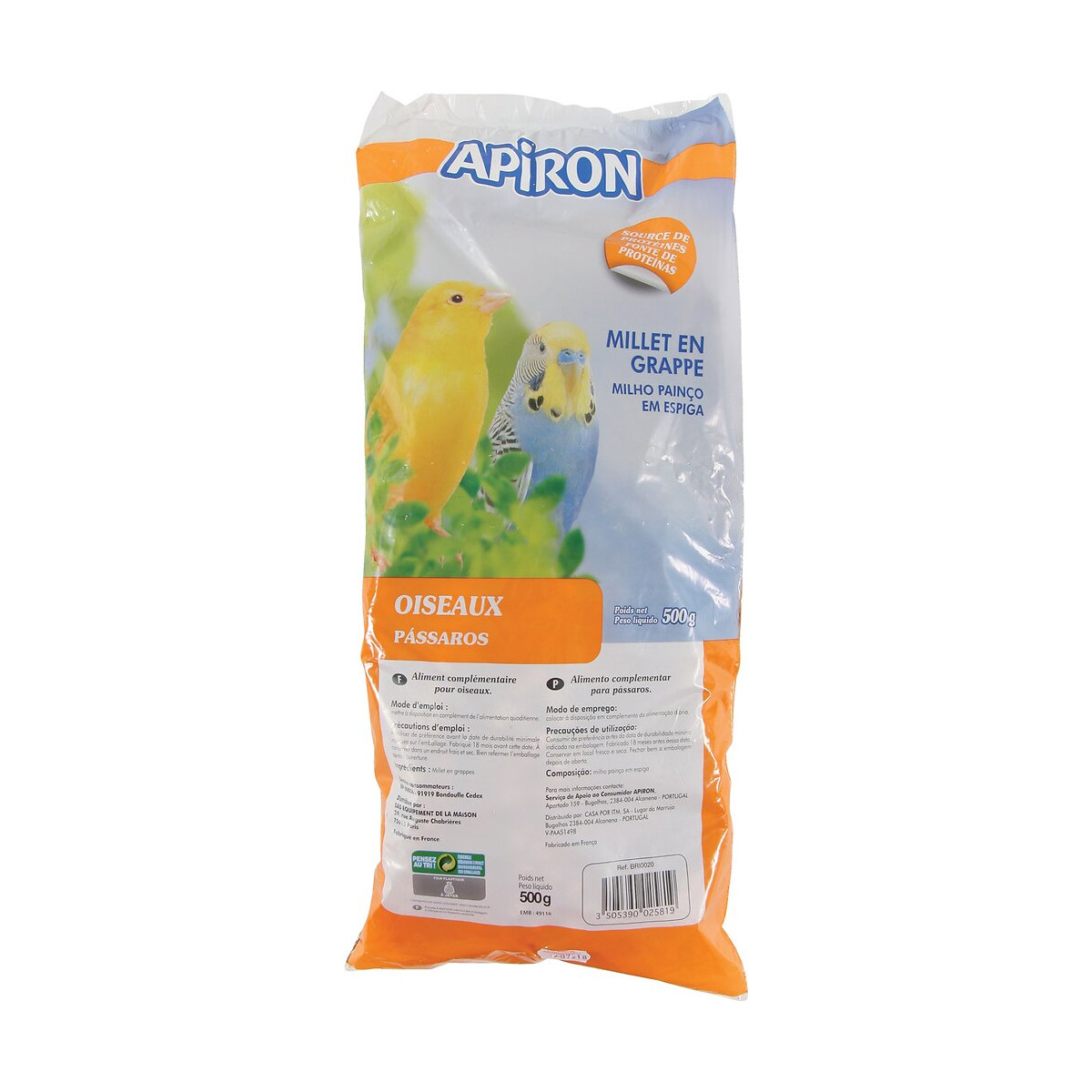 Millet en grappe APIRON. Friandise naturelle pour tous les oiseaux. Sachet de 500gr.Spécifications techniques