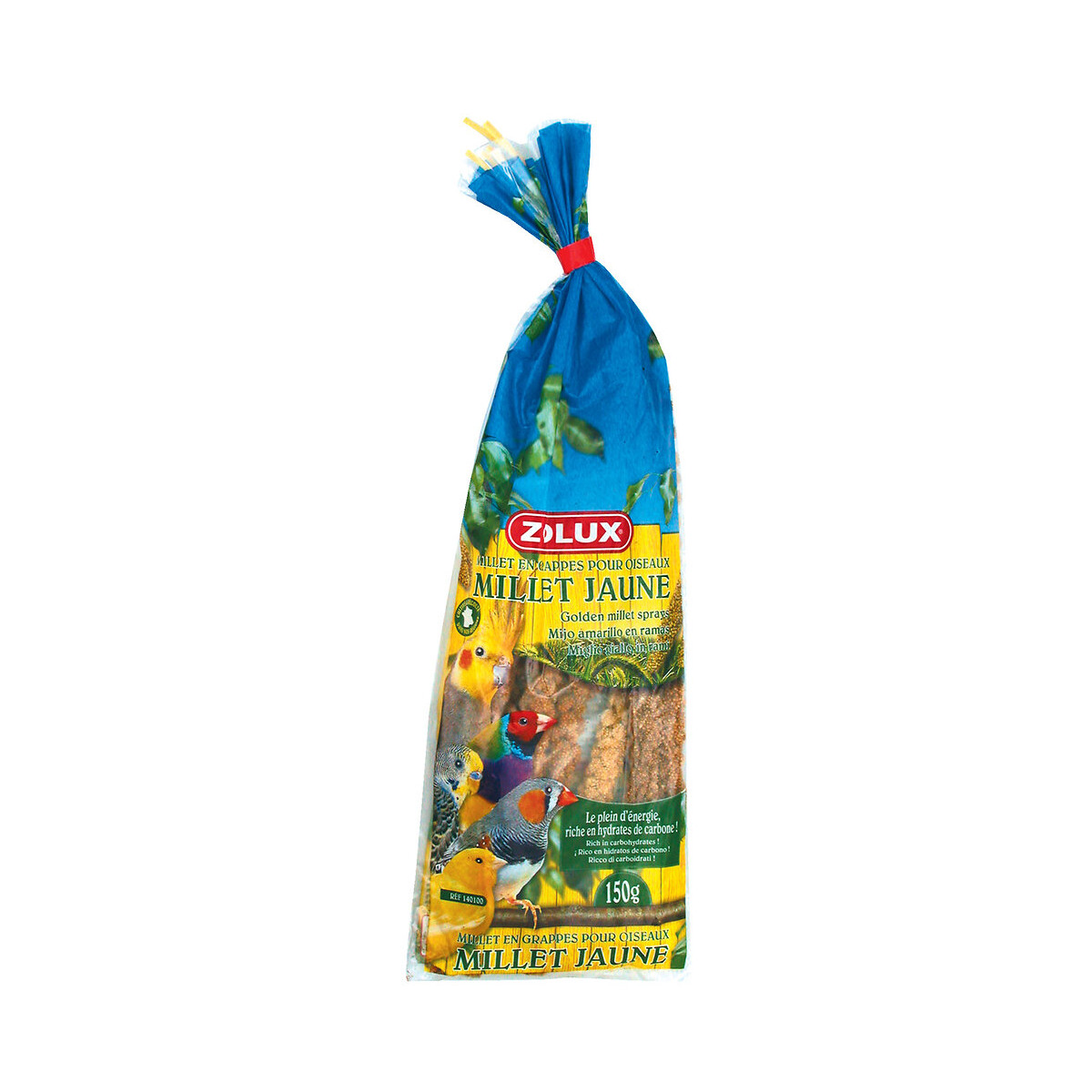 Récolté en Anjou, ce millet jaune en grappe est une friandise naturelle source d'énergie, de vitamines et de minéraux pour vos oiseaux. Poids : 150 g.