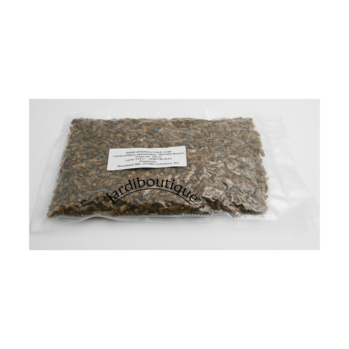 larve de mouche soldat nourriture complémentaire Utilisation: pour poissons de bassin , oiseaux, rongeur omnivore et Reptile ... Hermetia Illucens L'intérêt de donner à vos animaux ci-dessus ce complément alimentaire 100 % naturel, est de leurs apporter une bonne croissance, de la vitalité et de l'énergie ainsi que de belles couleurs vives. Larves entières déshydratées, est un complément alimentaire quotidien pour vos Poissons de bassins, Oiseaux d'ornement (ex : perroquets, perruches, canaris ), Rongeurs Omnivores (ex : cochon d'inde, furet, rat domestique, sauf lapin), Animaux parc et jardin (ex : Volailles, palmipèdes, pigeons, paons) et la Gamme Pêche. Composition : 100 % de larves Hermetia Illucens Jardiboutique ENT-VR est un aliment naturel, sans additifs chimiques, sans sous produit animaux et très protéiné . Naturellement odorant et attractif tous vos animaux se régaleront de ces larves. Photo non contractuelle, car il y a plusieurs vendeurs sur une même fiche produit.