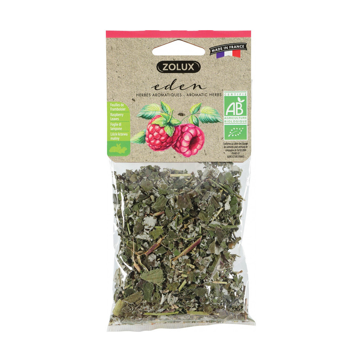 Friandise eden herbes aromatiques de framboisiere pour petits mammifères. Matière première pour petits mammifères- animaux familiers. Eden herbes aromatiques est une friandise naturelle. Le framboisier étant reconnu pour ses vertus digestives Eden feuilles de framboisier participera au bien être de votre petit animal tout en lui procurant un véritable plaisir gustatif de qualité. Framboisier bio eden 20g. Friandise eden herbes aromatiques de framboisiere pour petits mammifères. Matière première pour petits mammifères- animaux familiers. Eden herbes aromatiques est une friandise naturelle. Le framboisier étant reconnu pour ses vertus digestives Eden feuilles de framboisier participera au bien être de votre petit animal tout en lui procurant un véritable plaisir gustatif de qualité. Framboisier bio eden 20g. Mode d'emploi 1 à 2 fois par semaine en complément de son alimentation habituelle. Mettre toujours de l'eau propre et fraîche à disposition. Photo non contractuelle, car il y a plusieurs vendeurs sur une même fiche produit.
