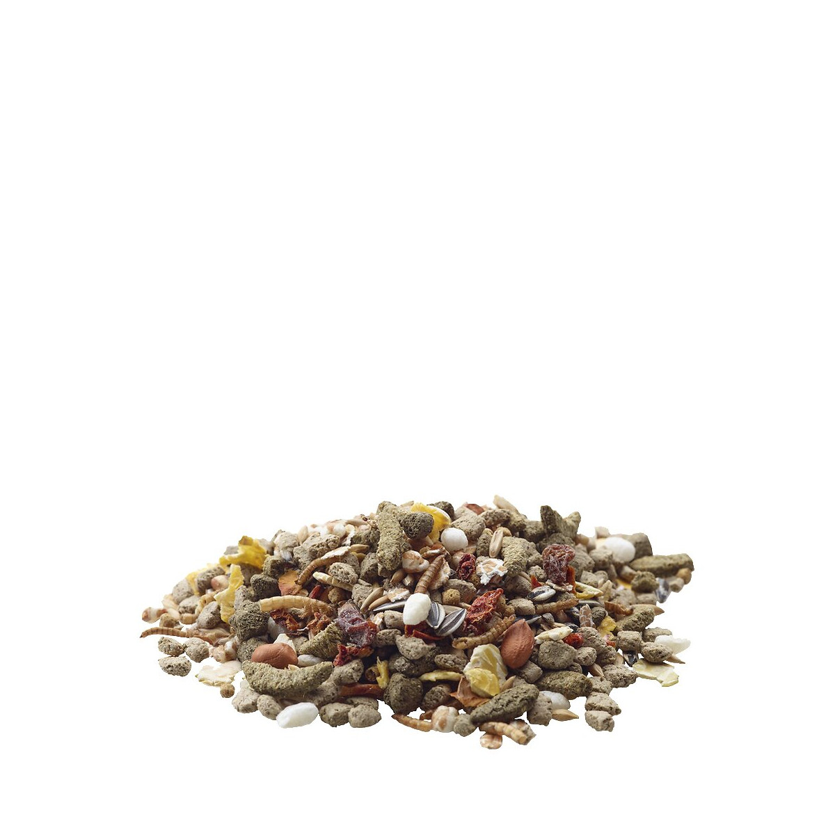Mélange varié et riche en céréales pour rats Avec des vers de farine comme protéines animales pour un régime équilibré Avec un supplément de vit. E pour une résistance accrue Composition riche en protéines pour un animal actif plein d'énergie Mélange varié et riche en céréales pour rats Avec des vers de farine comme protéines animales pour un régime équilibré Avec un supplément de vit. E pour une résistance accrue Composition riche en protéines pour un animal actif plein d'énergie AVEC DES PROTÉINES ANIMALES Contient des protéines animales pour un régime équilibré EXTRA VIT E Une dose supplémentaire de vit. E pour une résistance accrue ENERGY-PLUS Une composition riche en protéines pour un animal plein d'énergie COMPOSITION Céréales (orge 8%), sous-produits d'origine végétale, légumes (pois 8%, tomates 2%), graines, extraits de protéines végétales, fruits (papaye 2%, raisins secs 1,5%), insectes (vers de farine 4%), noix, substances minérales, levures, huiles et graisses, herbes, FOS, MOS, calendula, pépins de raisin, algues, yucca MODE D'EMPLOI Renouvelez chaque jour tant l'aliment que l'eau de boisson. Selon la taille et la race, une ration alimentaire moyenne de 15 à 20 g par jour est recommandée pour un rat. Photo non contractuelle, car il y a plusieurs vendeurs sur une même fiche produit.