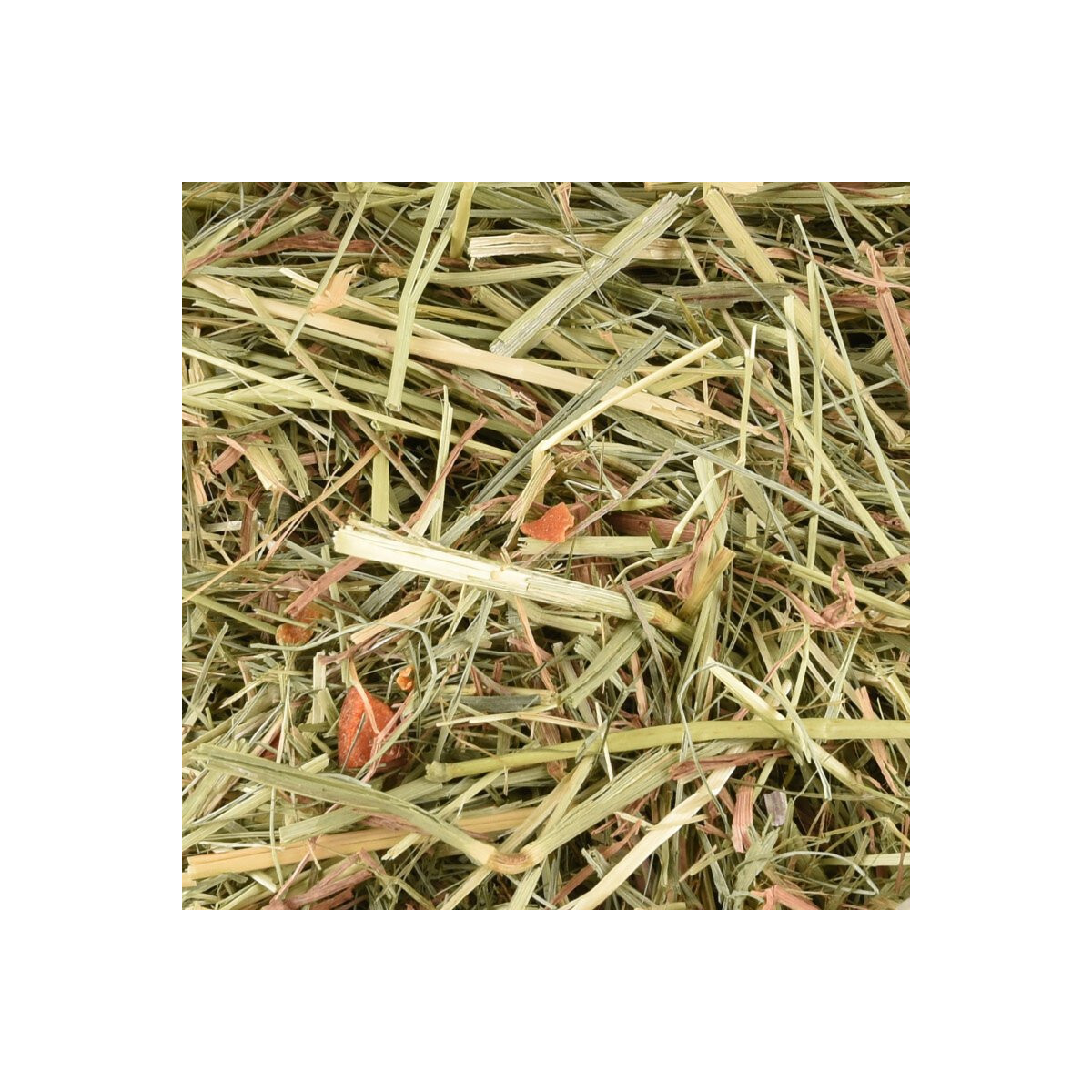 Foin de pré premium avec carotte. 1 kg soit 30 litres. Foin de pré Herbe de grande qualité plus verte et au parfum plus prononcé. La teneur élevée en fibres favorise la digestion. Récoltée et séchée avec soin. Un complément sain, naturel et savoureux au régime alimentaire quotidien a votre petit animal. Matière première pour aliments pour rongeurs ornementaux. Foin de pré premium avec carottes. 1 kg soit 30 litres. Foin de pré Herbe de grande qualité plus verte et au parfum plus prononcé. La teneur élevée en fibres favorise la digestion. Récoltée et séchée avec soin. Un complément sain, naturel et savoureux au régime alimentaire quotidien a votre petit animal. Matière première pour aliments pour rongeurs ornementaux. Pas pour la consommation humaine. Le foin Flamingo est un produit naturel et écologique qui produit peu de poussière. La teneur élevée de fibres favorise la digestion et la santé intestinale des rongeurs. Voilà la raison pour laquelle le foin de pré constitue une partie importante de la nourriture quotidienne de votre animal. Composition : 96% foin de pré, 4% carotte. Conseil d'alimentation: Veillez à ce que l'animal ait toujours de foin frais à sa disposition. Constituants analytiques Cellulose brute 33% Protéine brute 12% Matières grasses brutes 1.9% Cendres brutes 8% Photo non contractuelle, car il y a plusieurs vendeurs sur une même fiche produit.
