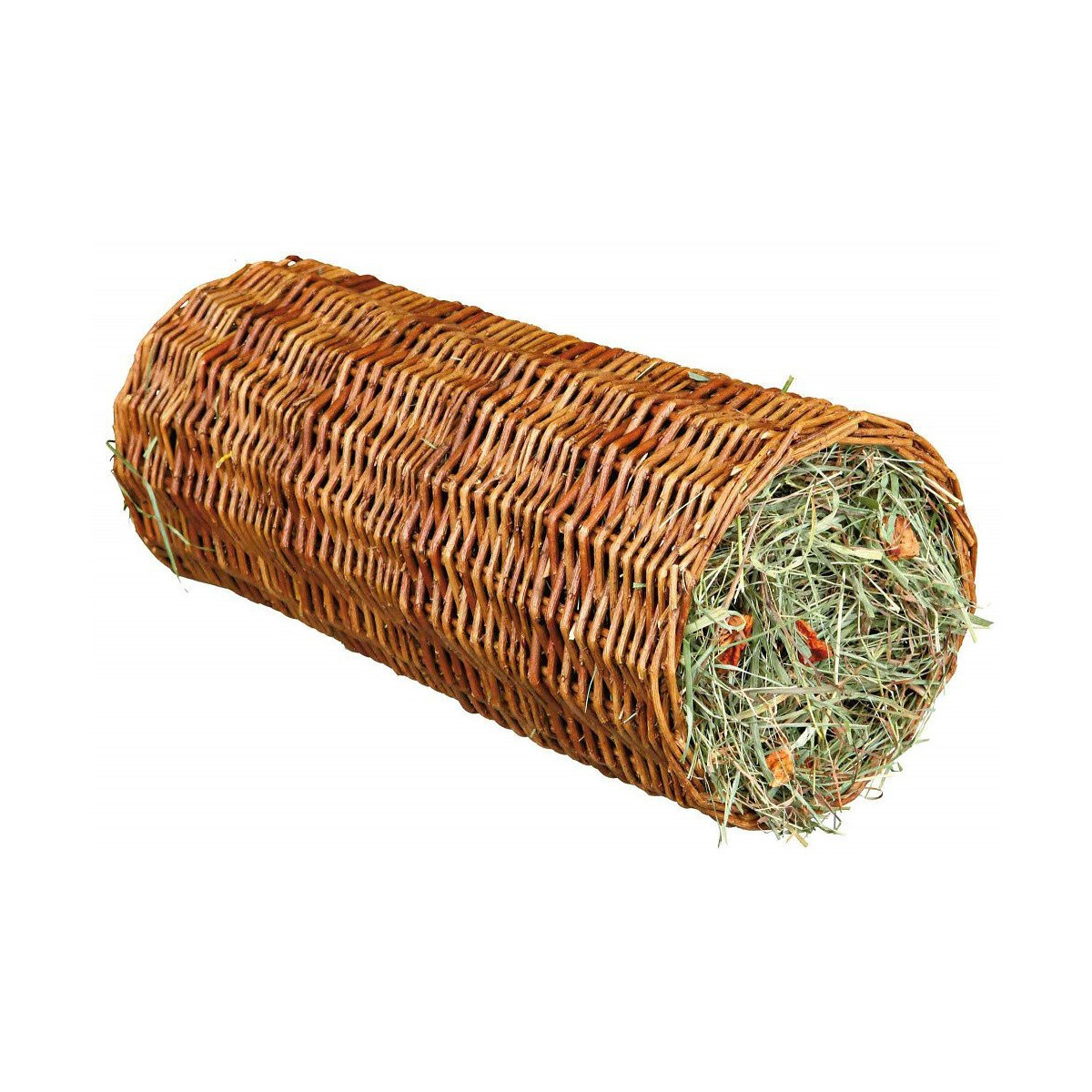 Dimensions: ø 20 × 38 cm Contient/Poids: 220 g pour: lapins, petits rongeurs Tunnel en osier avec foin avec carotte sans céréales Photo non contractuelle, car il y a plusieurs vendeurs sur une même fiche produit.