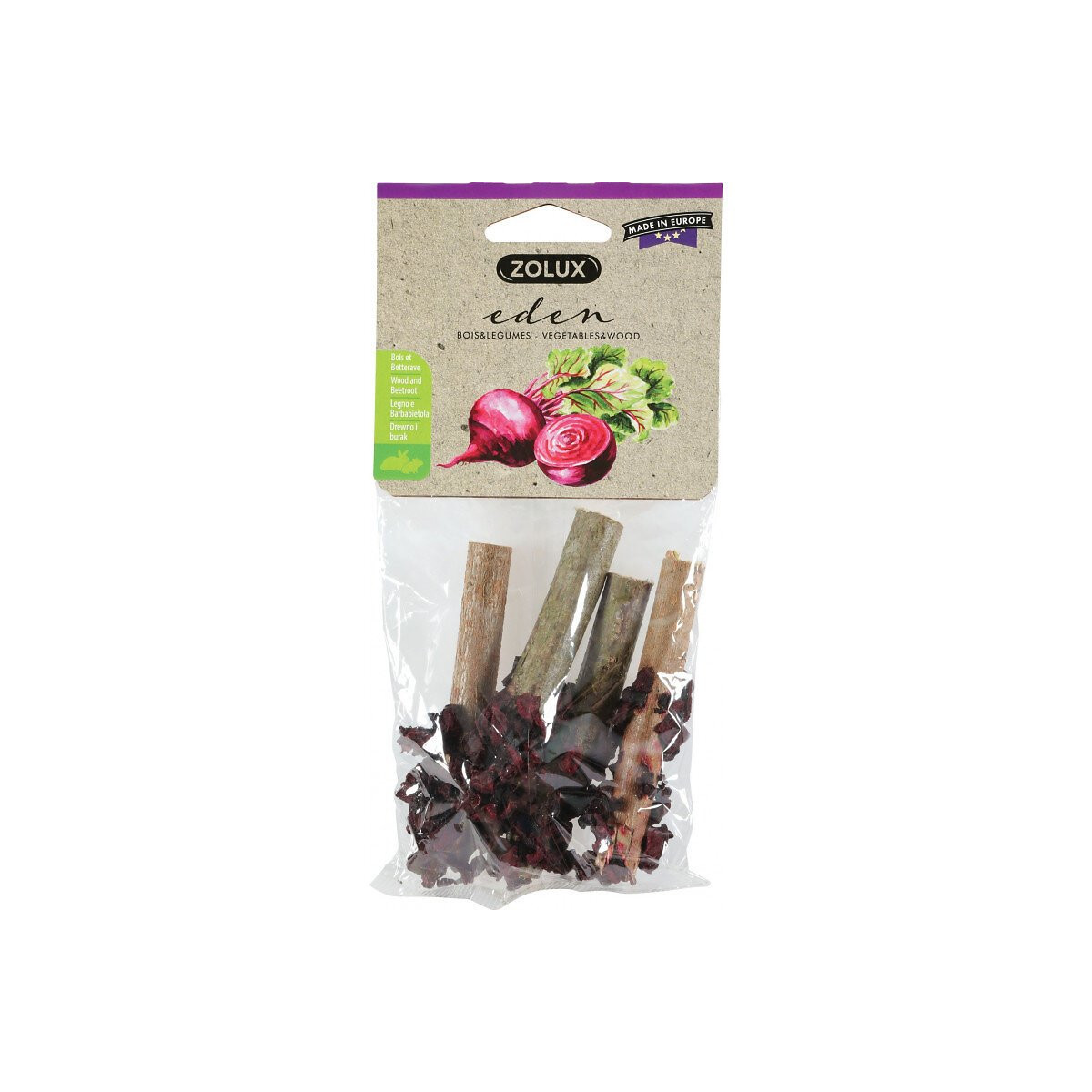 Friandise eden bois et betterave pour petits mammifères. Aliment complémentaire pour petits mammifère-animaux familiers. Eden bois et légumes composé uniquement d'ingrédient naturels. Une friandise qui aidera votre petit animal à faire réguler sa poussée dentaire tout en lui procurant un véritable plaisir gustatif. les légumes sont fixés sur le bois grâce à une matière naturelle , la fécule de pomme de terre. Buchettes bois betterave 36g. Friandise eden bois et betterave pour petits mammifères. Aliment complémentaire pour petits mammifère-animaux familiers. Eden bois et légumes composé uniquement d'ingrédient naturels. Une friandise qui aidera votre petit animal à faire réguler sa poussée dentaire tout en lui procurant un véritable plaisir gustatif. les légumes sont fixés sur le bois grâce à une matière naturelle , la fécule de pomme de terre. Buchettes bois betterave 36g. Mode d'emploi : 1 à 2 fois par semaine en complément de son alimentation habituelle. Mettre toujours de l'eau propre et fraîche à disposition. Photo non contractuelle, car il y a plusieurs vendeurs sur une même fiche produit.