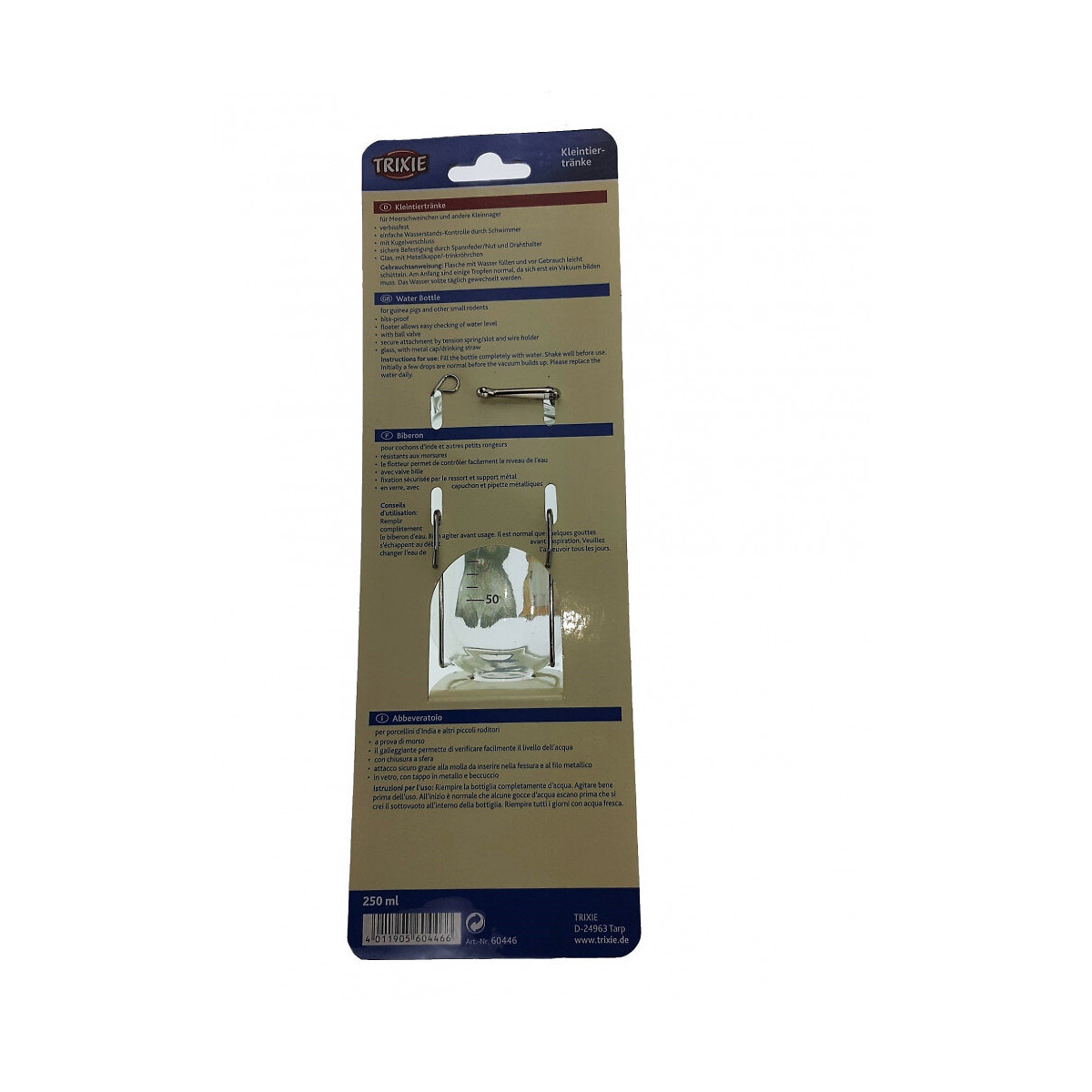 Honey & Hopper biberon en verre - Capuchon et pipette métalliques - Résistant aux morsures - Le flotteur permet de contrôler facilement le niveau de l'eau - Fixation sécurisée par le ressort et support en métal - Avec valve en bille - Contenance : 250 ml - Couleur : gris.
