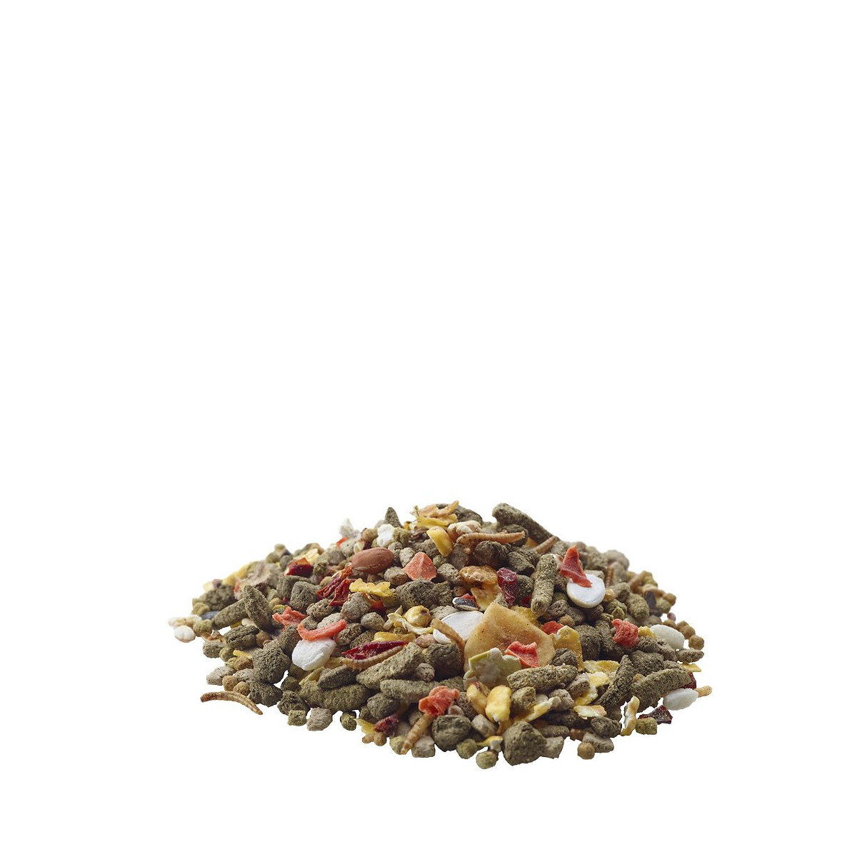 Mélange varié et riche en céréales pour gerbilles Avec des vers de farine comme protéines animales pour un régime équilibré Composition de fruits et de légumes qui permet de varier le menu quotidien et apporte toutes les vitamines essentielles Un supplément de céréales pour faire le plein d'énergie et de vitalité de ces animaux actifs Mélange varié et riche en céréales pour gerbilles Avec des vers de farine comme protéines animales pour un régime équilibré Composition de fruits et de légumes qui permet de varier le menu quotidien et apporte toutes les vitamines essentielles Un supplément de céréales pour faire le plein d'énergie et de vitalité de ces animaux actifs AVEC DES PROTÉINES ANIMALES Contient des protéines animales pour un régime équilibré CÉRÉALES SUPPLÉMENTAIRES Un supplément de céréales pour faire le plein d'énergie et de vitalité FRUITS ET LÉGUMES Une composition variée et toutes les vitamines essentielles COMPOSITION Céréales (maïs 17%), sous-produits d'origine végétale, légumes (pois 12%, poivron rouge 2%, carottes 2%), graines, fruits (banane 1%, raisins secs 1%), extraits de protéines végétales, insectes (vers de farine 4%), noix, substances minérales, levures, herbes, huiles et graisses, calendula, FOS, MOS, pépins de raisin, algues, yucca MODE D'EMPLOI Renouvelez chaque jour tant l'aliment que l'eau de boisson. Selon la taille et la race, une ration alimentaire moyenne de 10 à 15 g par jour est recommandée pour une gerbille. Photo non contractuelle, car il y a plusieurs vendeurs sur une même fiche produit.