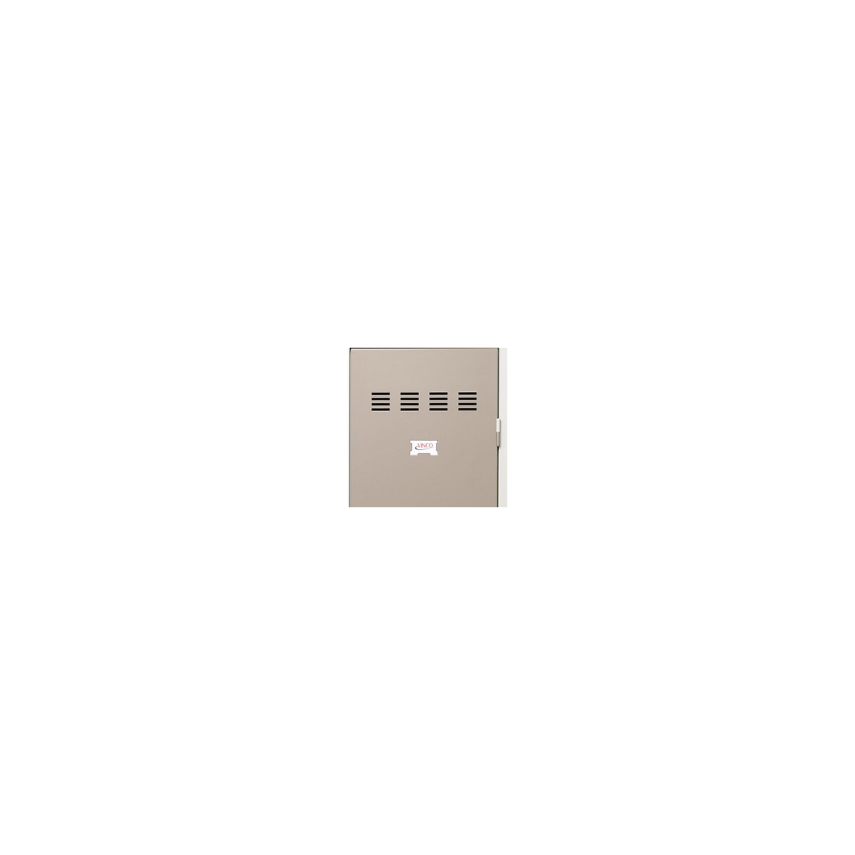 Vestiaire monobloc en acier XC recyclable d'épaisseur 7/10ème – 4 colonnes de 4 cases superposées - Système de fermeture par porte cadenas à moraillon débraillable - Porte étiquette embouti sur la porte - Dimensions : p50XL120xh180 cm - Finition peinture poudre d'epoxy - Coloris : corps gris perle et portes taupesSpécifications techniques