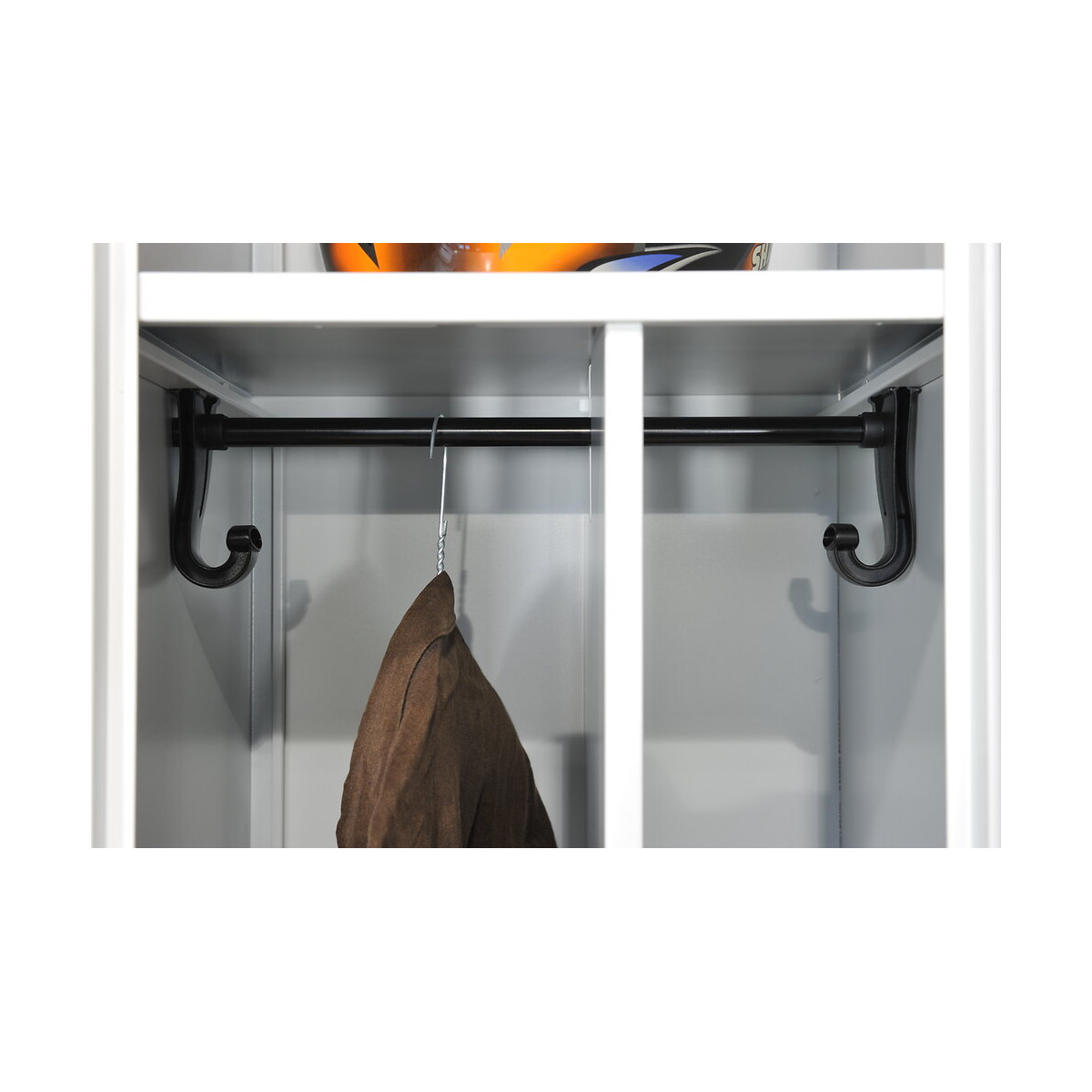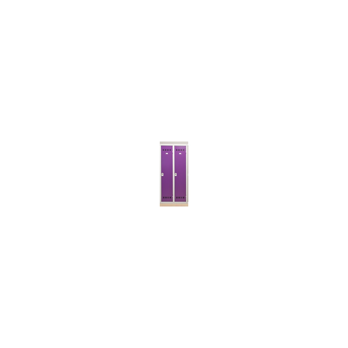 Vestiaire industrie salissante monobloc en acier XC recyclable d'épaisseur 7/10ème - 2 cases équipées chacune d'un séparateur, d'une tringle, d'une tablette et de 2 patères supportant jusqu'à 30 kg - Système de fermeture par serrure à clef - Porte étiquette embouti sur la porte - Dimensions : p50xL80xh180 cm - Finition peinture poudre d'epoxy - Coloris : corps gris perle et portes prunesSpécifications techniques