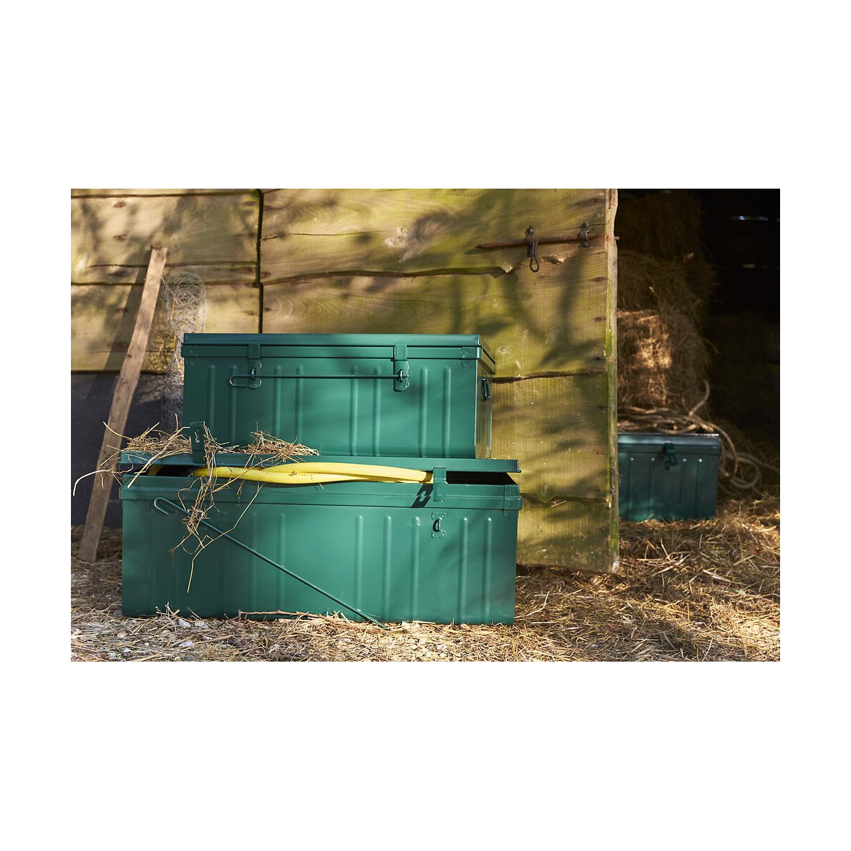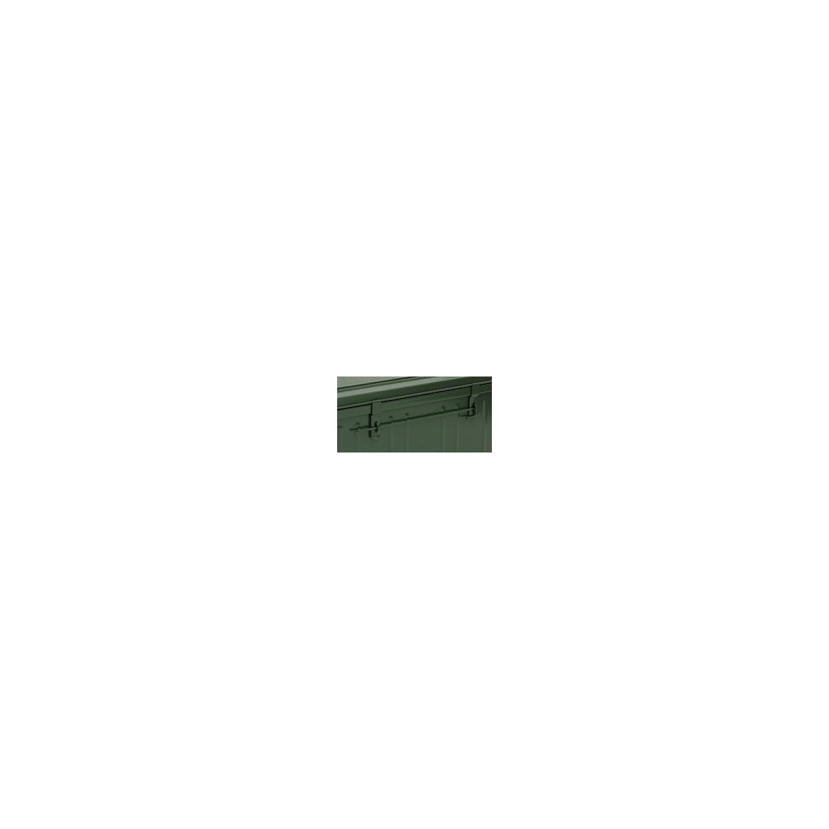 Cette cantine métallique de grande capacité est la solution idéale pour ranger, stocker, protéger ou déplacer du matériel ou des outils. Utile pour les grands voyages, mais aussi pour ranger au sein de la maison, elle se glissera facilement dans toutes les pièces de la maison en y apportant une touche industrielle. En acier 5/10ème Pièces assemblées serties et soudées point par point 2 poignées latérales en fil d’acier rabattables pour le transport Fermeture par tringle cadenassable sur 2 verrous 2 raidisseurs sur le couvercle pour pouvoir superposer les cantines en toute sécurité 2 raidisseurs sur le dessous pouvant accueillir des roulettes Epaisseur couvercle : 37 mm Dimensions : p55xL100xh40 cm Dimensions intérieures : p51xL86xh36 cm Capacité 175 litres Poids supporté : 100 kgs Finition peinture poudre d’époxy polyester Coloris vert gold finition satinéeSpécifications techniques