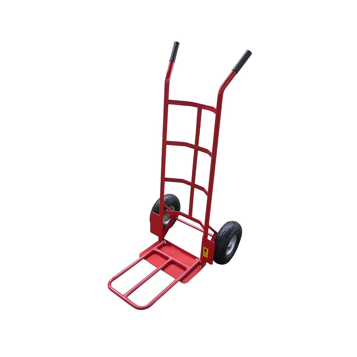 Diable lourdes charges - Structure acier époxy rouge. 2 roues gonflables diamètre 27 cm. 2 garde-roues. 2 poignées confort en plastique noir. Capacité de charge : 250 kg