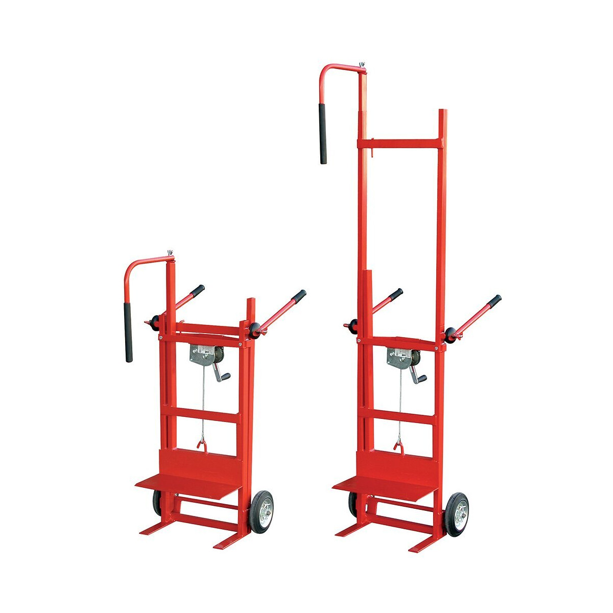 Diable avec treuil auto-freiné. La rehausse et le bras de maintien pivotant permettent à une personne seule de décrocher un radiateur de nimporte quelle dimension. Bâti en acier finition peinture epoxy avec poignées repliables. Equipé d’une rallonge pour augmenter la hauteur maxi. Déplacement en basculant à l’aide de 2 roues à bandage caoutchouc. Treuil auto-freiné. Câble Ø 4 mm. Plateau support : 435 x 220 mm. Hauteur maxi plateau support : 570 mm. Hauteur maxi avec rallonge et bras de maintien : 2530 mm.Spécifications techniques