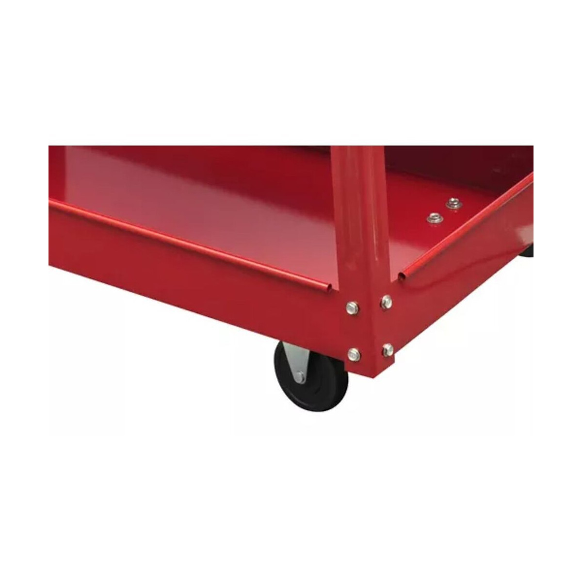 Servante d'outillage robuste avec une charge maximale de 100 kg pour la garde en dépôt et le transport facile et sécuritaire de vos outils dans l'atelier et le garage. Construction en acier par poudrage, 3 étagères (bac de rangement compris), 2 roues de guidage et 2 roues fixes ainsi qu'une poignée pour pousser. Capacité de charge maximale : 100 kg Taille des pneus : Ø 9,5 cm Dimension des surfaces de charge : 76,5 x 41 cm Dimensions : 84 x 41 x 78 cm 3 étagères 2 chariots